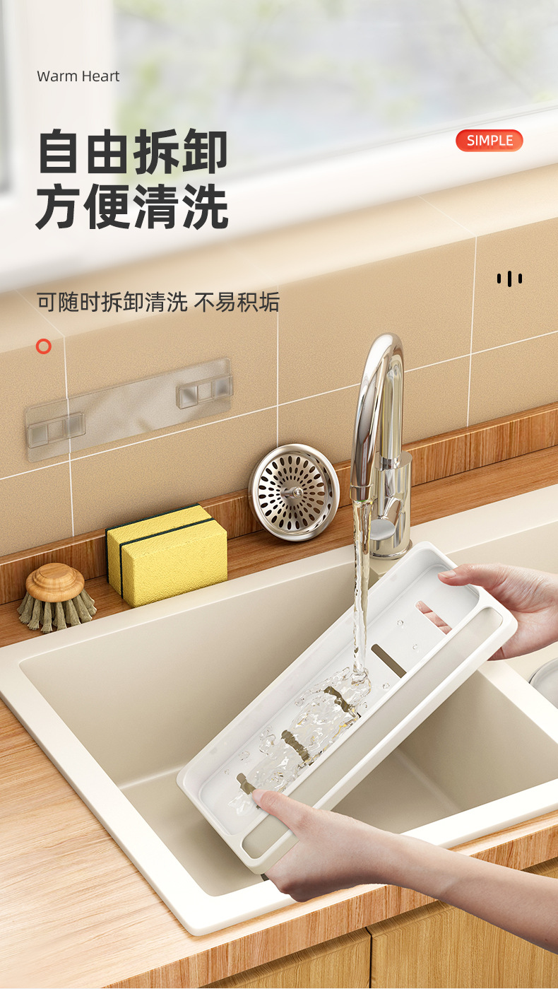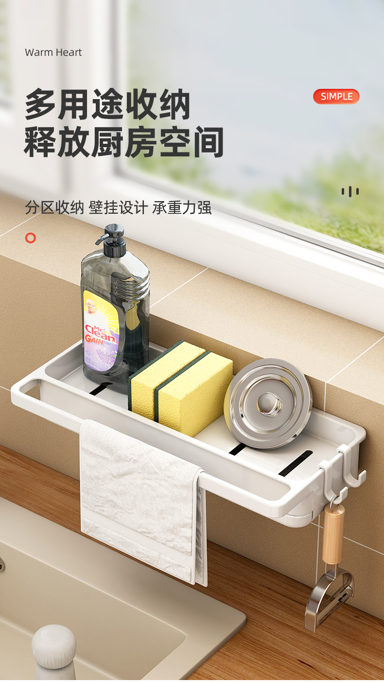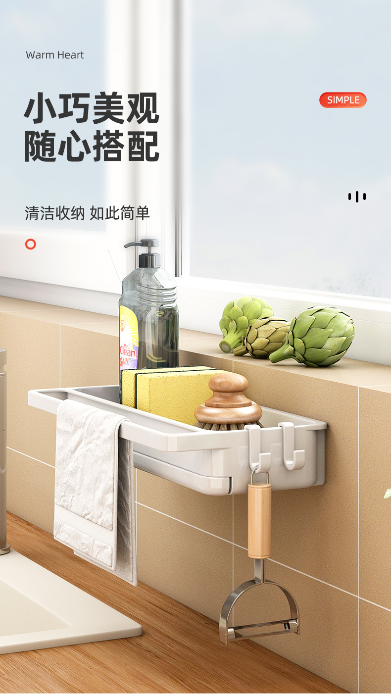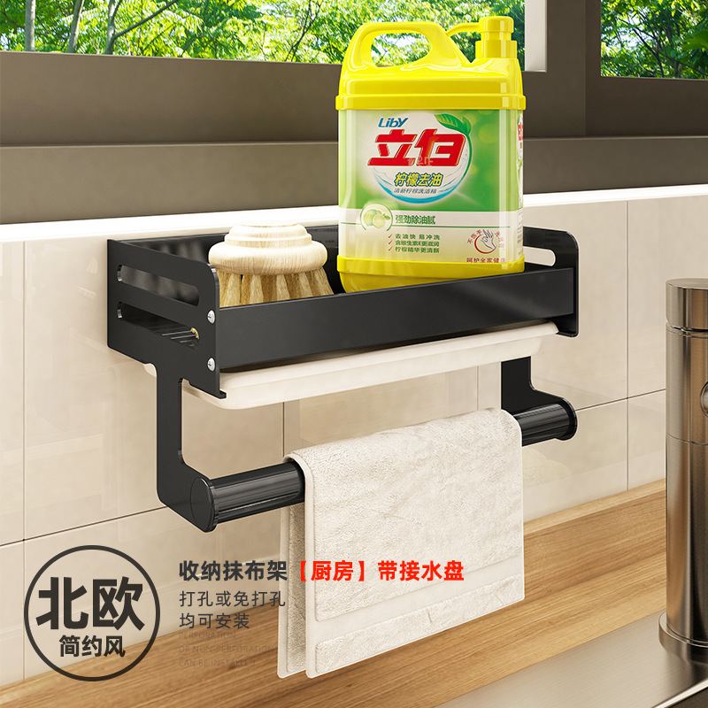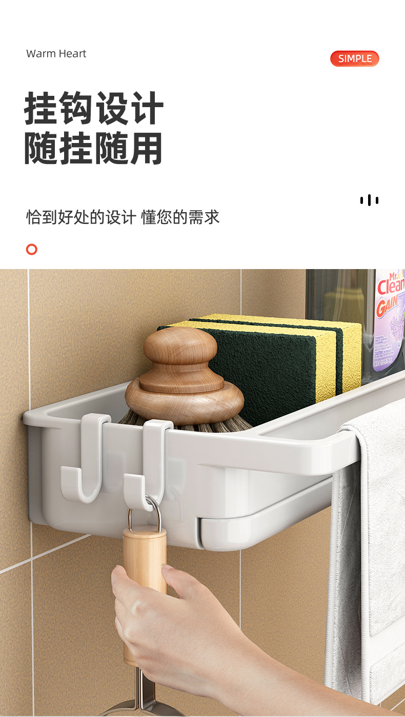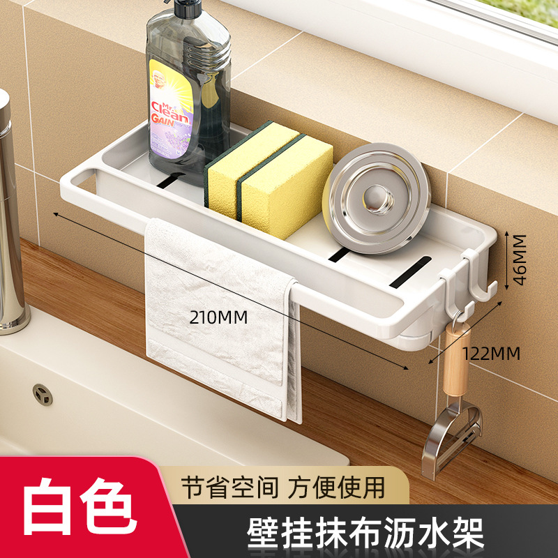 흰색 천 랙 주방 수납 랙 펀치 프리 스토리지 랙 벽걸이 형 조미료 가정용 배수 바구니 싱크대 유물