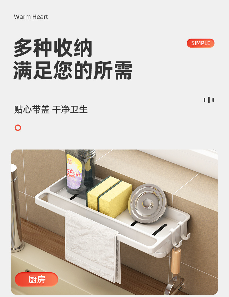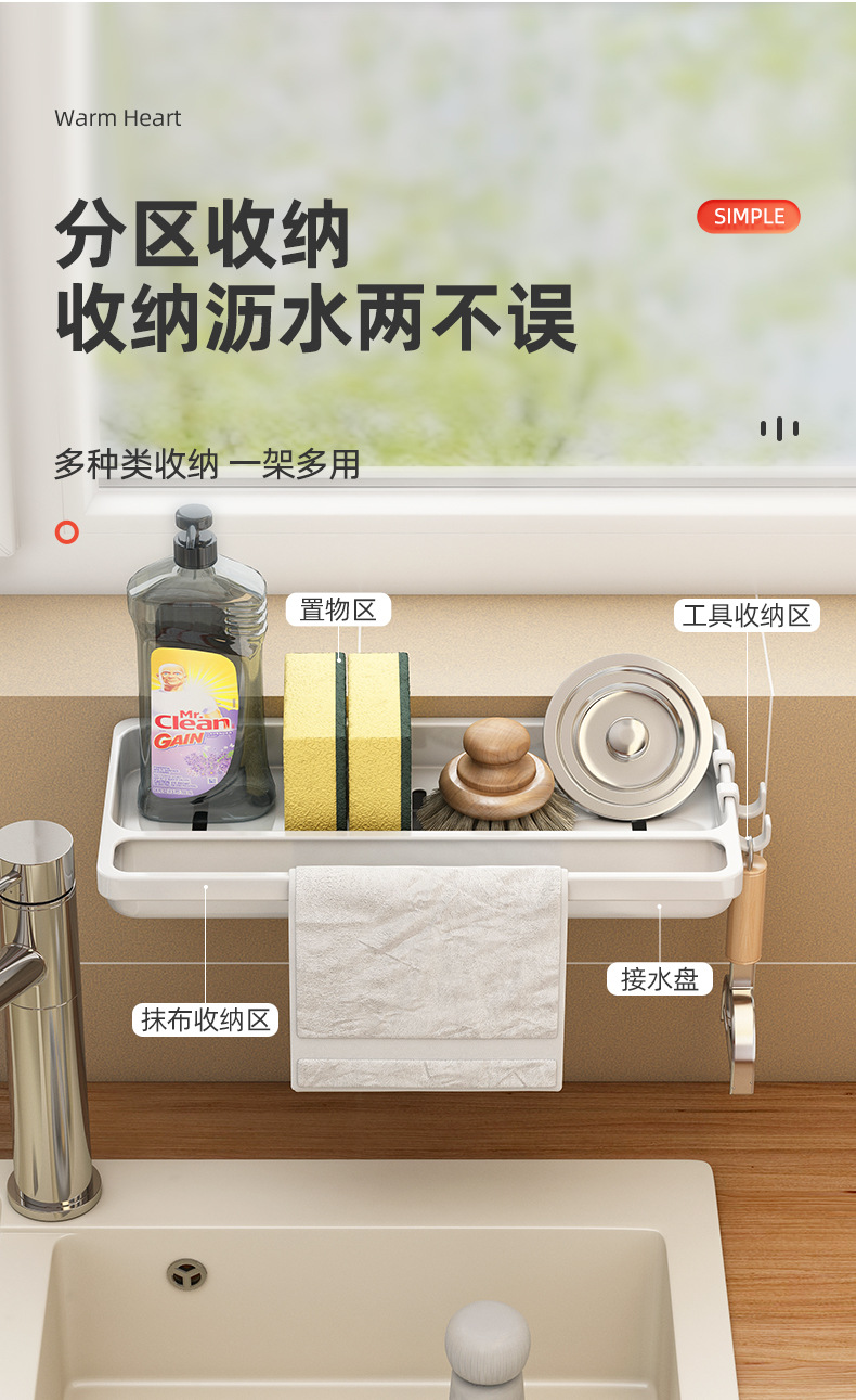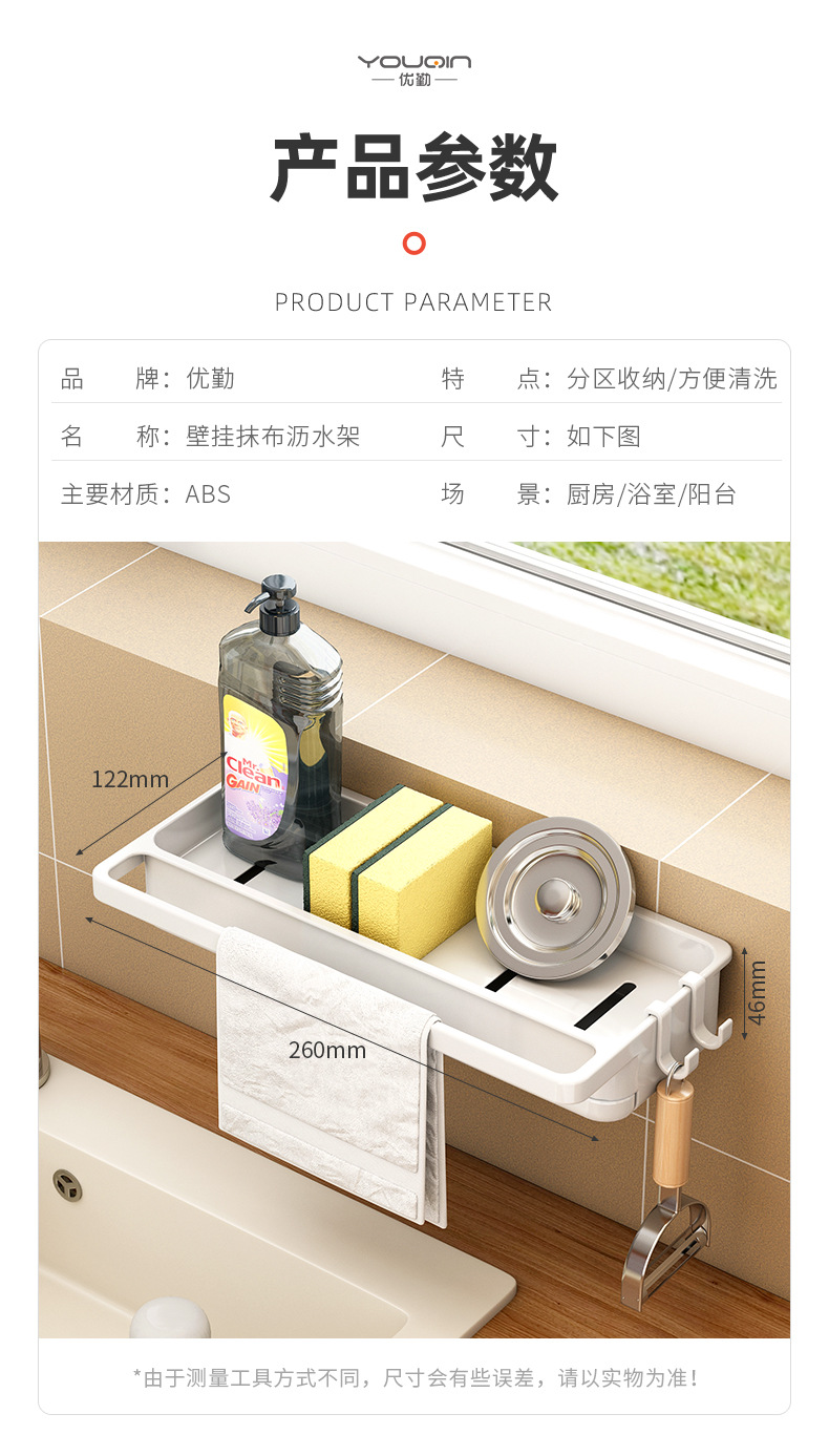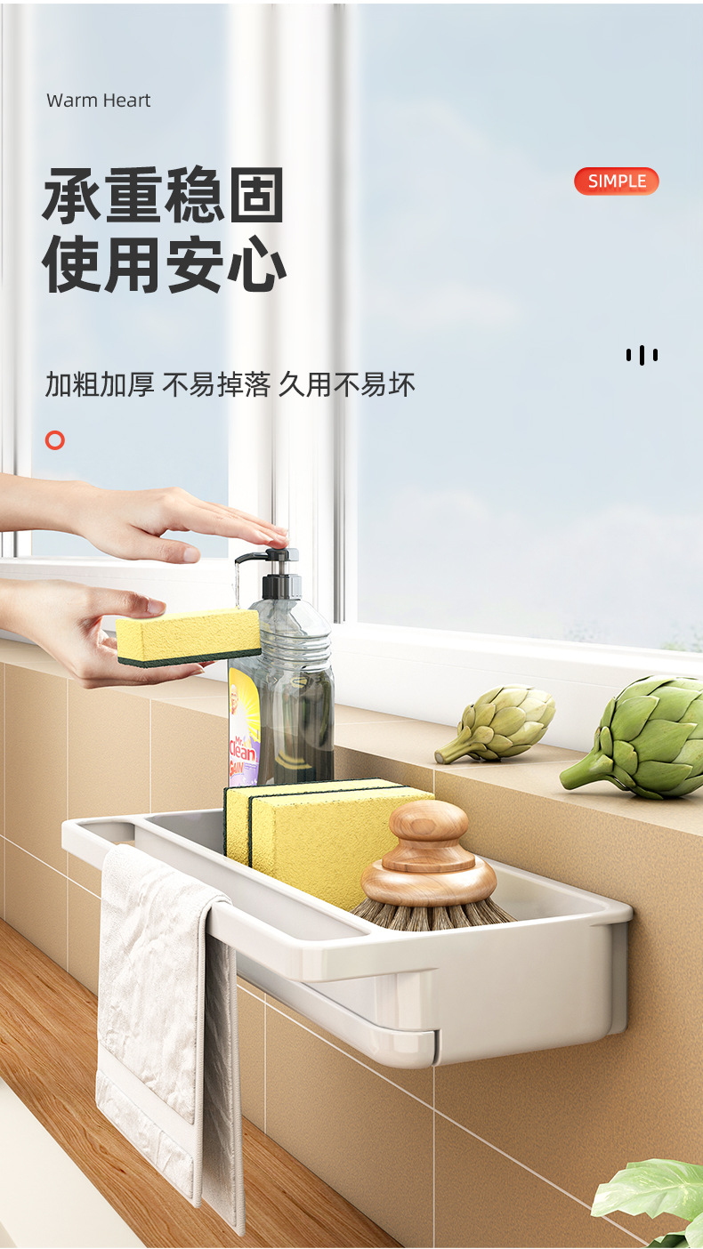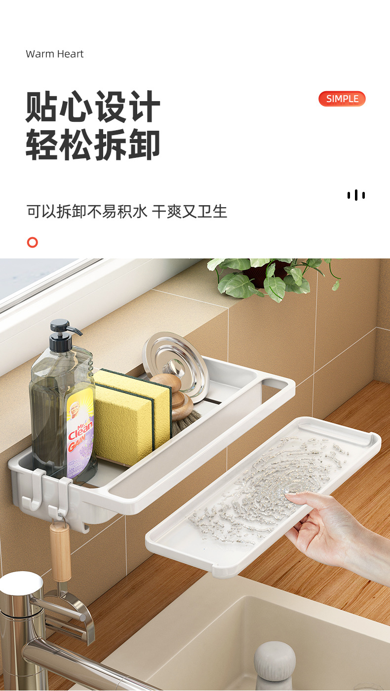 흰색 천 랙 주방 수납 랙 펀치 프리 스토리지 랙 벽걸이 형 조미료 가정용 배수 바구니 싱크대 유물