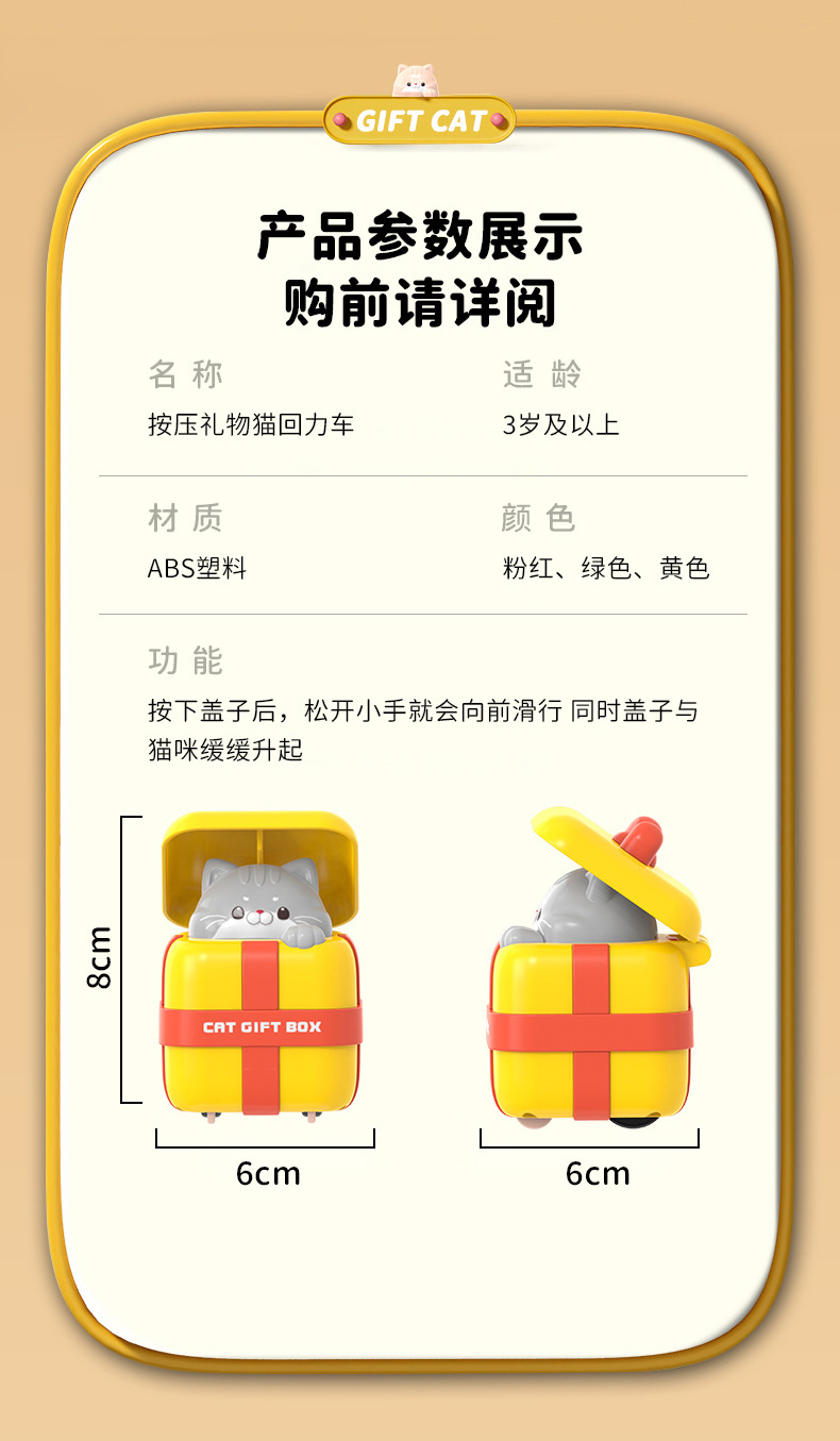 새로운 고양이 프레스 장난감 자동차 창조적 인 만화 관성 백 포스 CAR 어린이 장난감 실속 도매스토어 가기