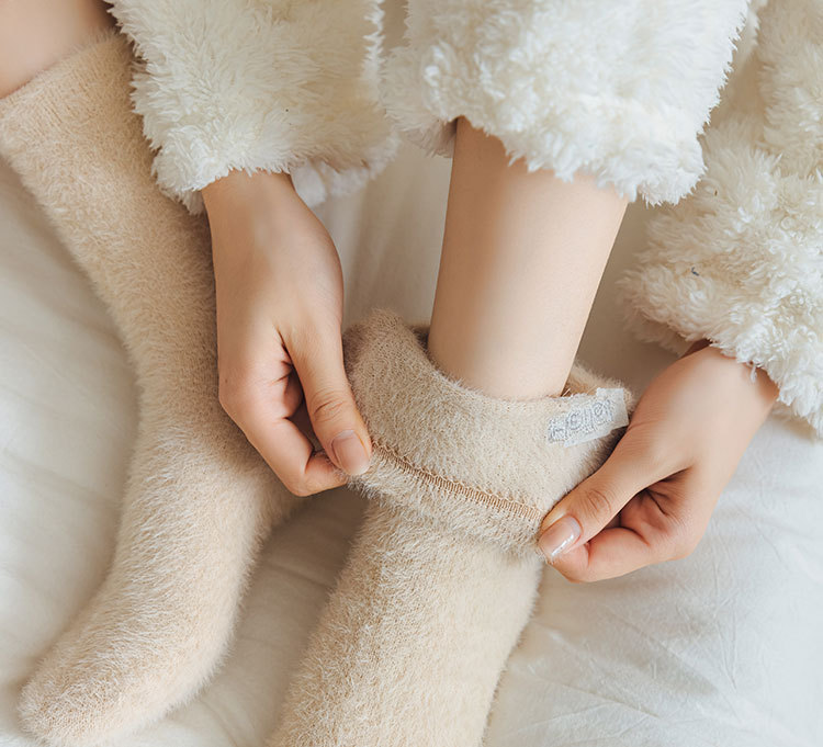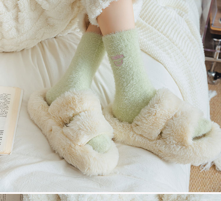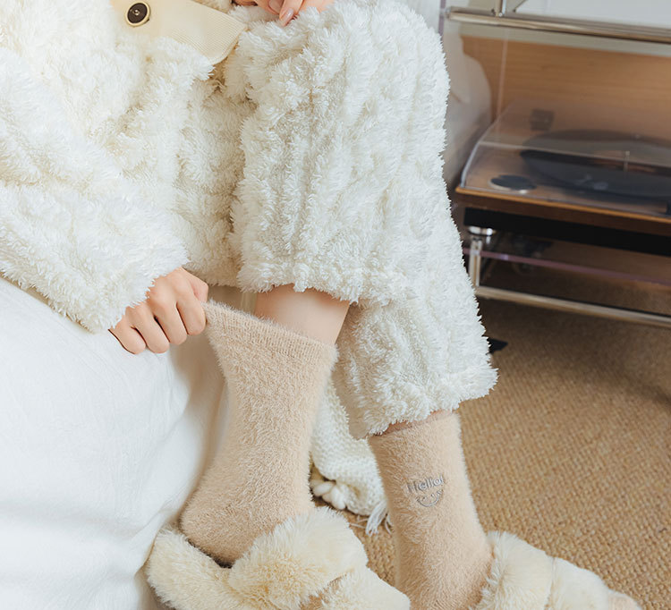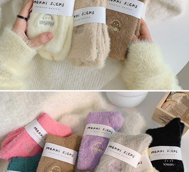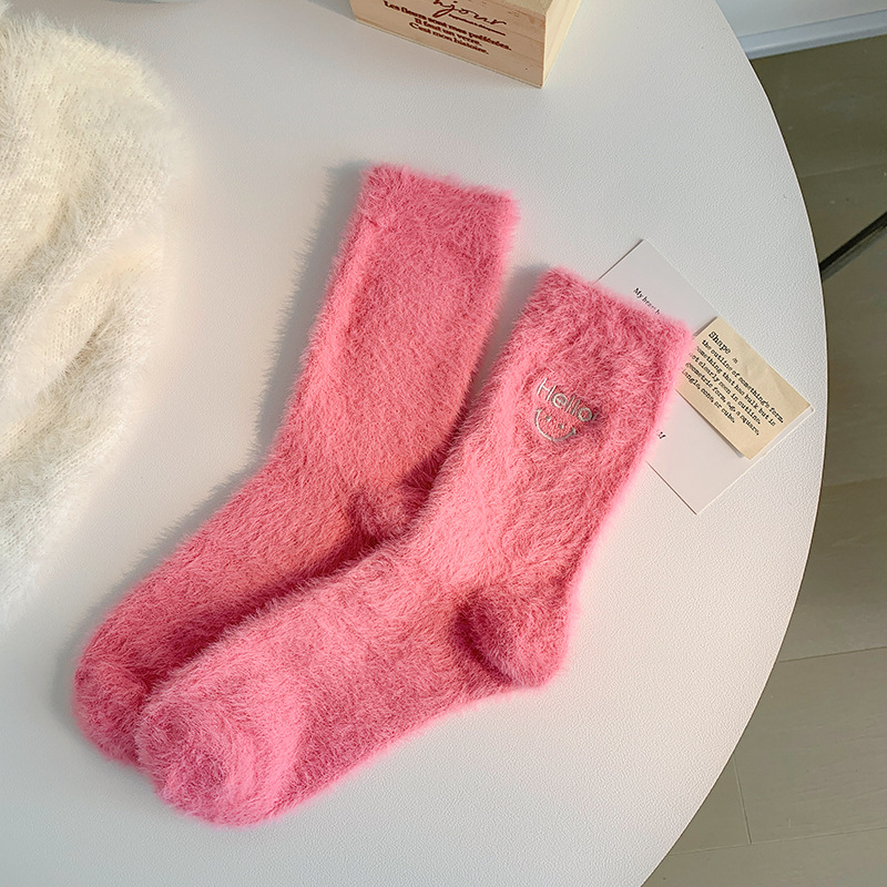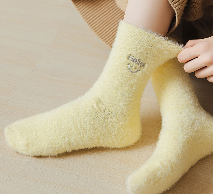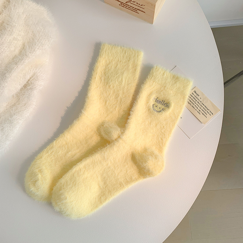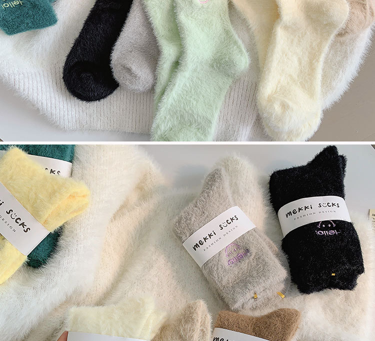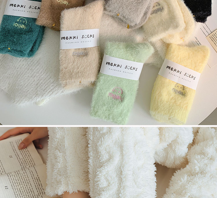가을과 겨울 새로운 밍크 벨벳 양말 여성 양말 스마일 얼굴 자수 기모 두꺼운 따뜻한 방한 아기 양말 스타킹