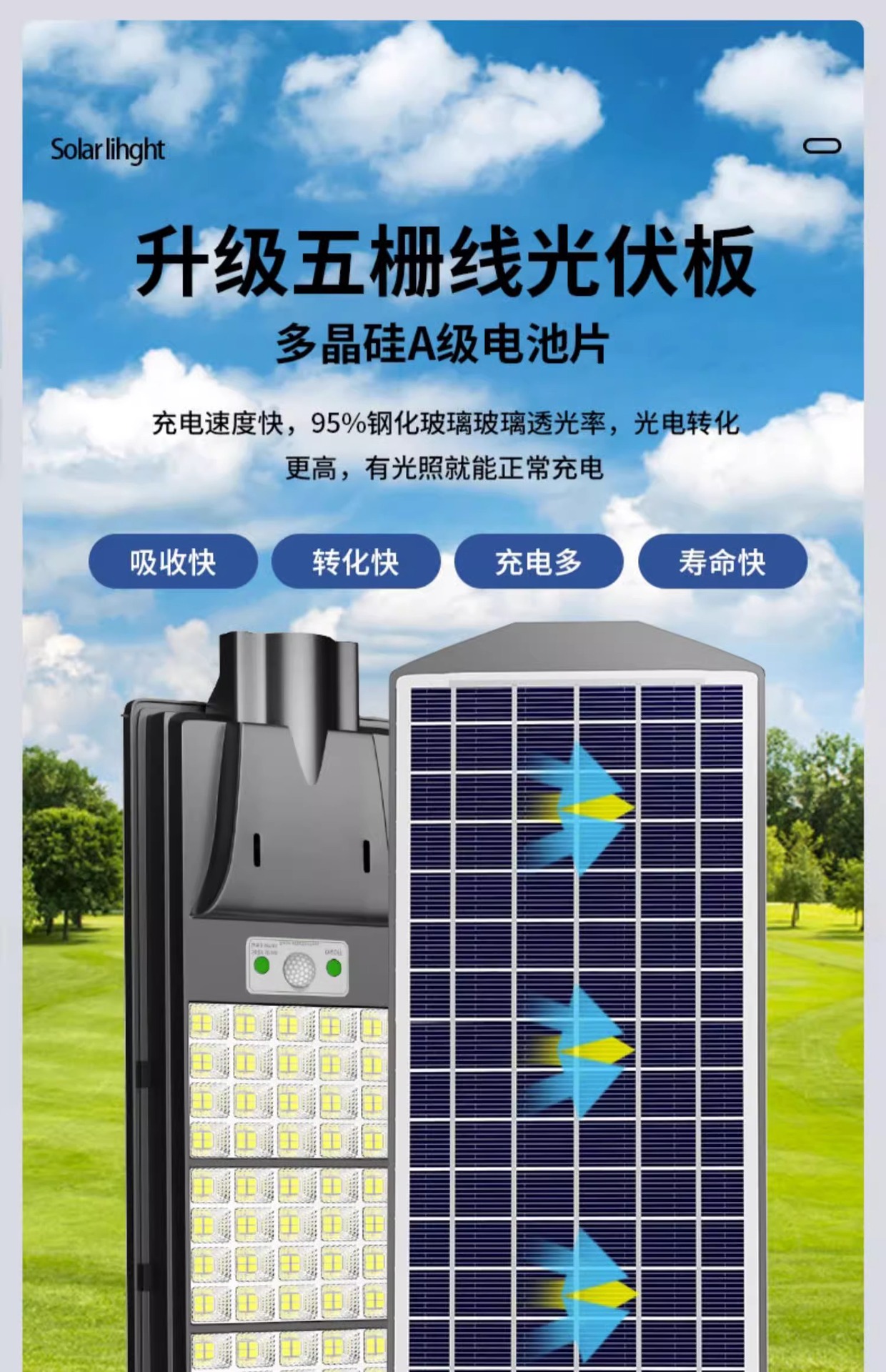 엔지니어링 태양 통합 가로등 야외 정원 조명 인체 센서 조명 야외 방수 태양 센서 조명스토어 가기