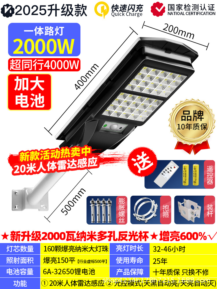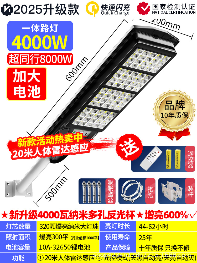 • 인체 센서 + 어두워지면 자동 조명 + 지속 조명 + 원격 제어 기능을 갖춘 4000w 국경 간 인기 모델