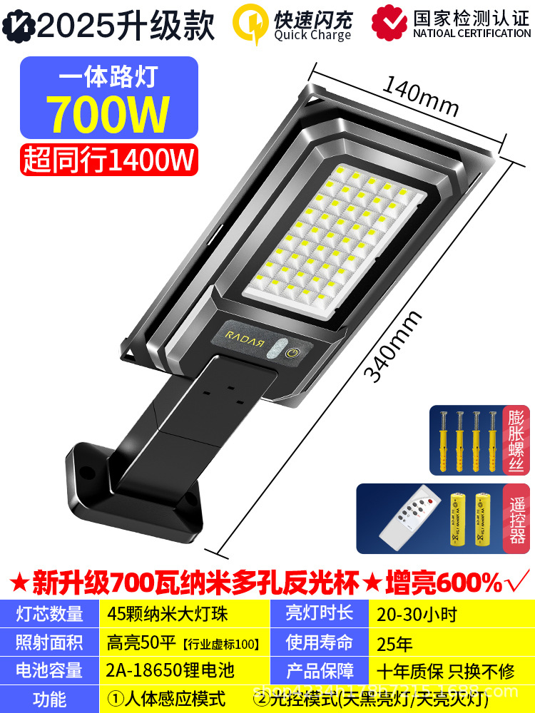 엔지니어링 태양 통합 가로등 야외 정원 조명 인체 센서 조명 야외 방수 태양 센서 조명