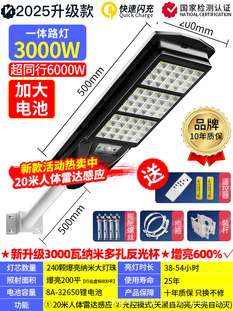 • 인체 센서 + 어두워지면 자동 조명 + 지속 조명 + 원격 제어 기능을 갖춘 국경 간 인기 모델 3000w