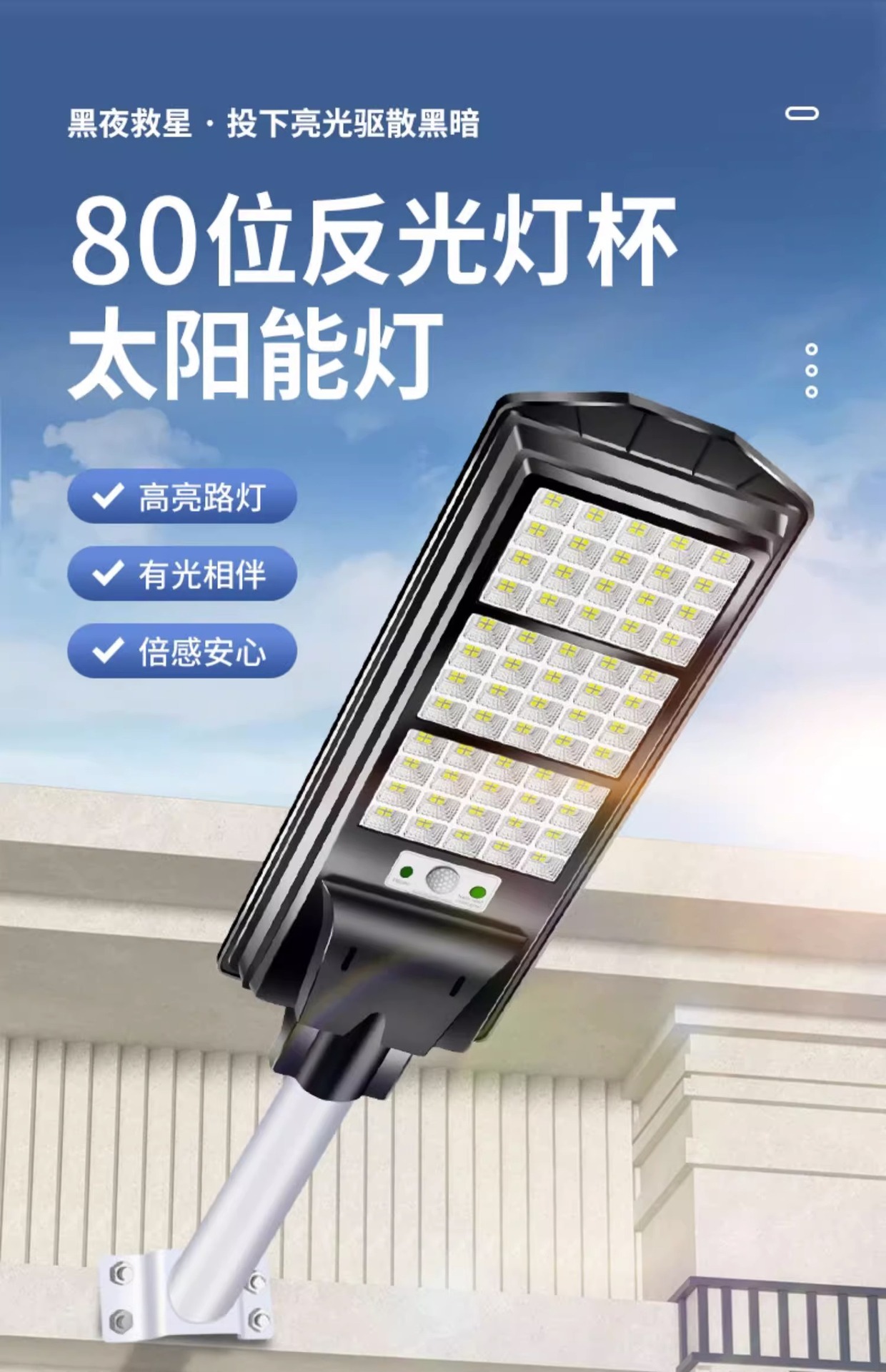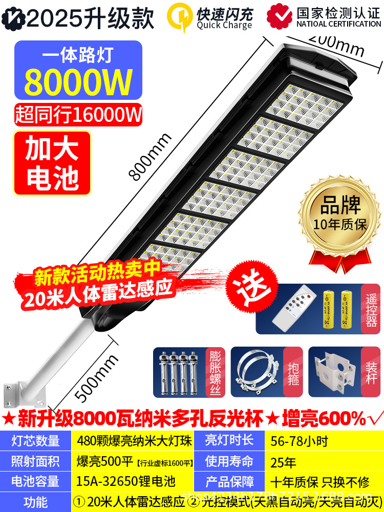 • 인체 센서 + 어두워지면 자동 조명 + 지속 조명 + 원격 제어 기능을 갖춘 국경 간 인기 모델 8000w