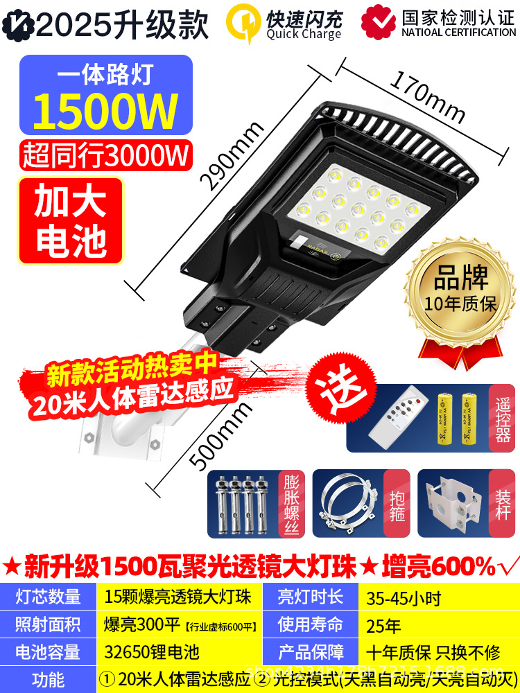 • 인체 센서 + 어두워지면 자동 조명 + 지속 조명 + 원격 제어 기능을 갖춘 국경 간 핫 세일 모델 1500w