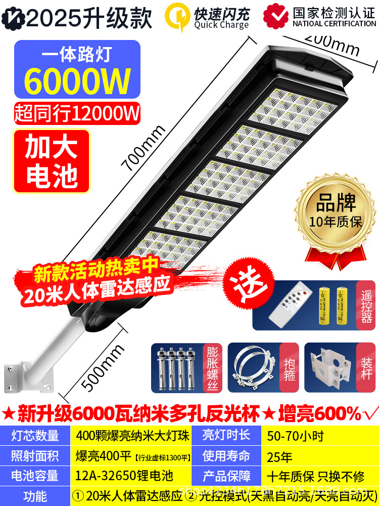 • 인체 센서 + 어두워지면 자동 조명 + 지속 조명 + 원격 제어 기능을 갖춘 국경 간 인기 모델 6000w