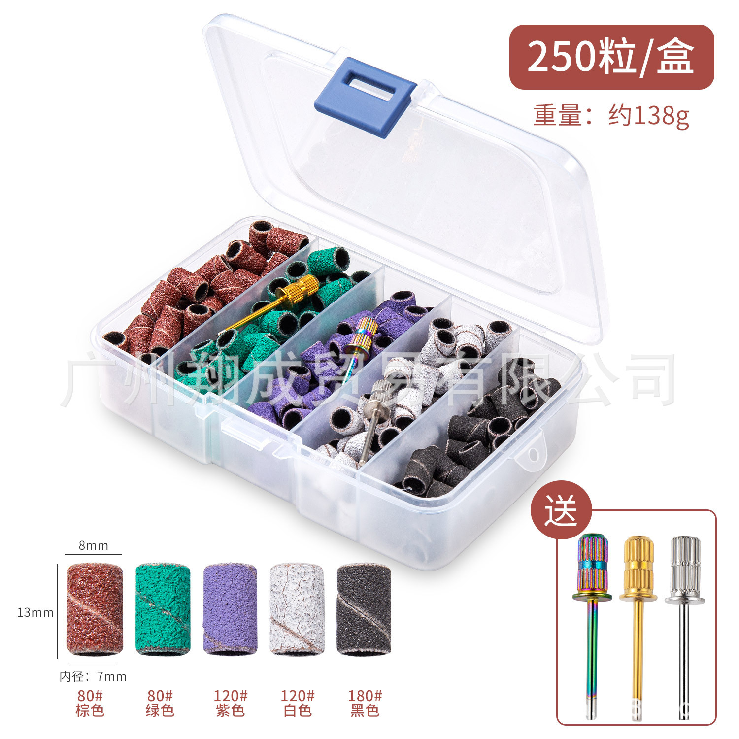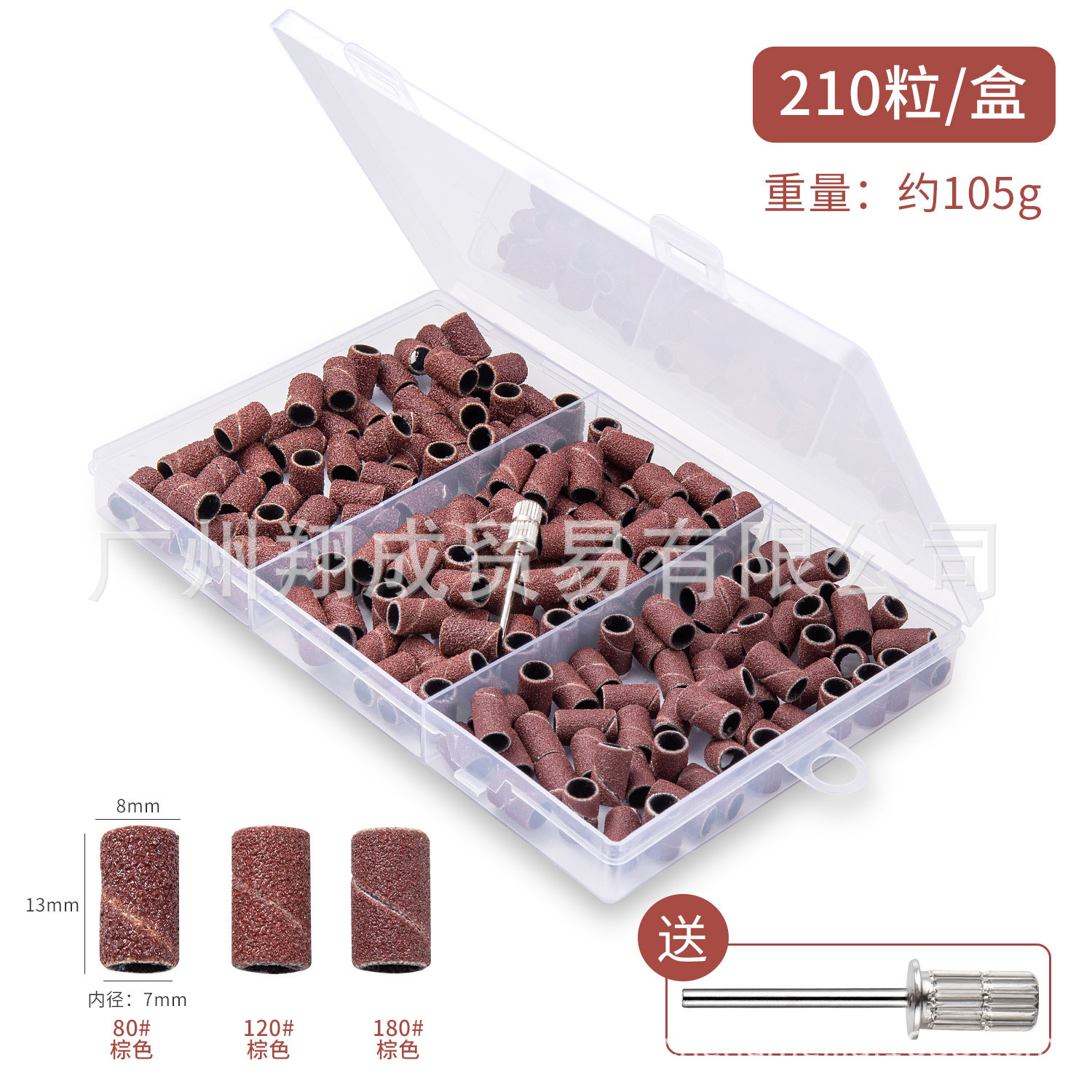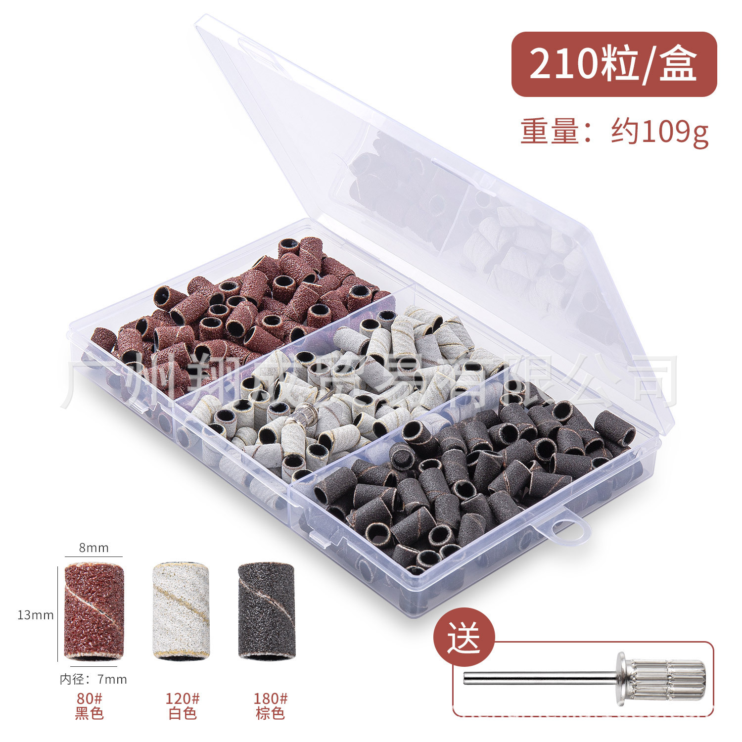 210 개/박스 네일 아트 컬러 샌드 링 세트 컬러 모래 링 축 손톱 제거 조각 연삭 연마 헤드 도구 상자스토어 가기