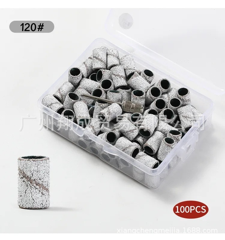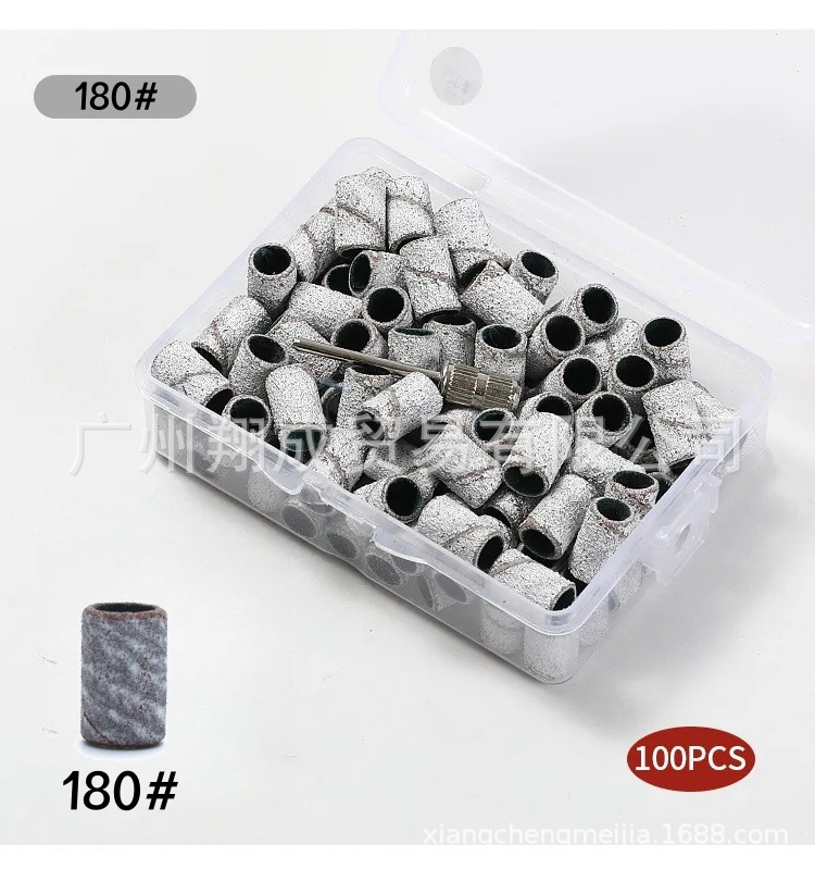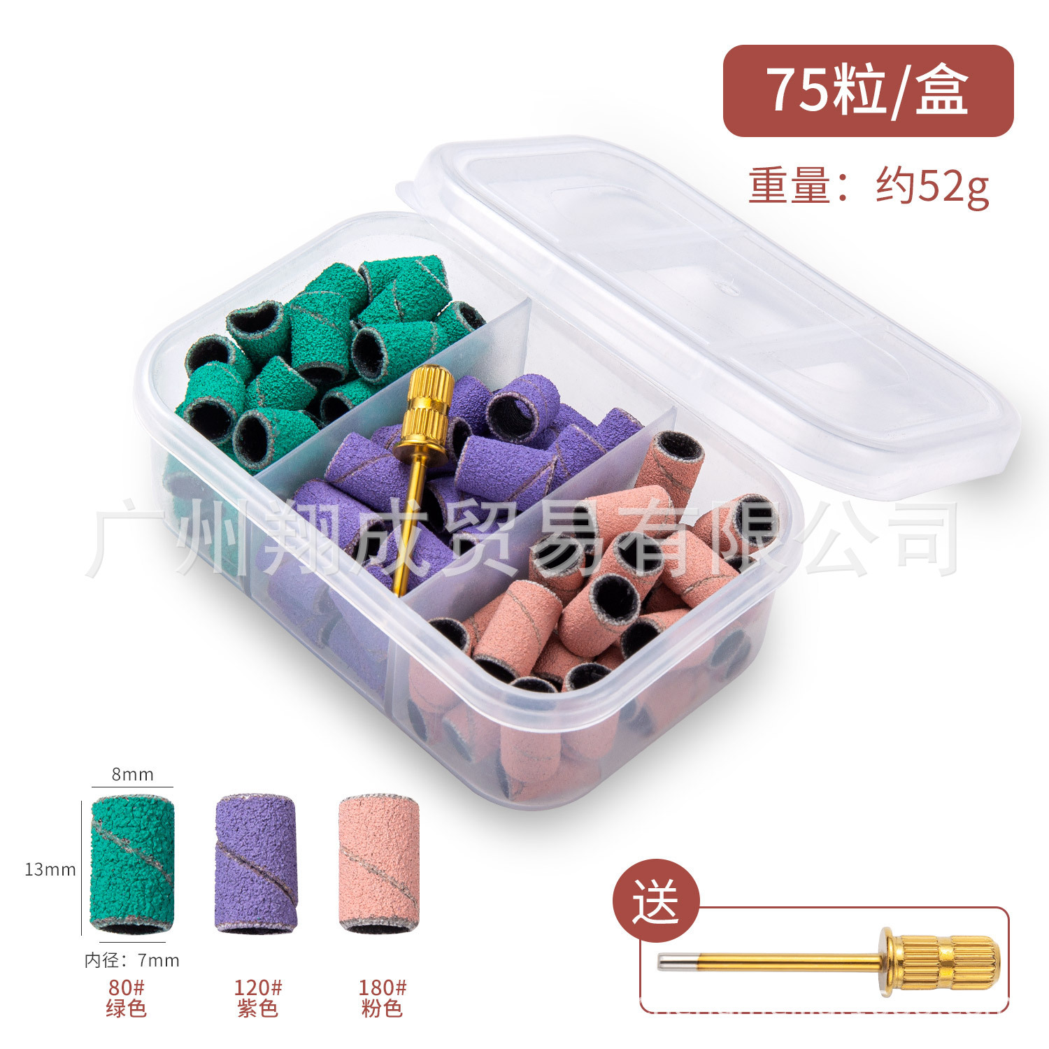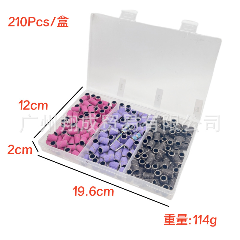 210 개/박스 네일 아트 컬러 샌드 링 세트 컬러 모래 링 축 손톱 제거 조각 연삭 연마 헤드 도구 상자스토어 가기