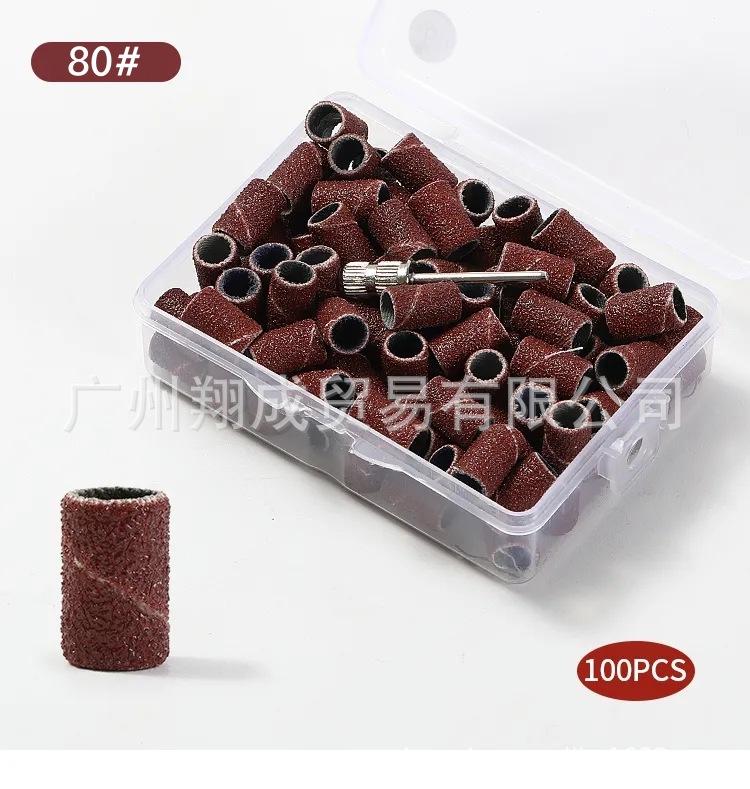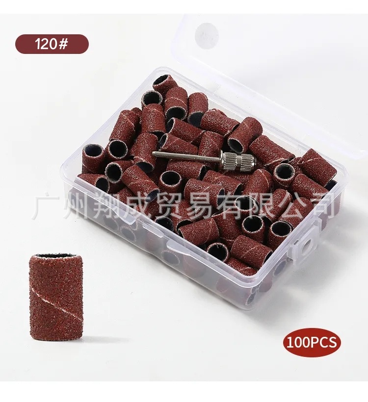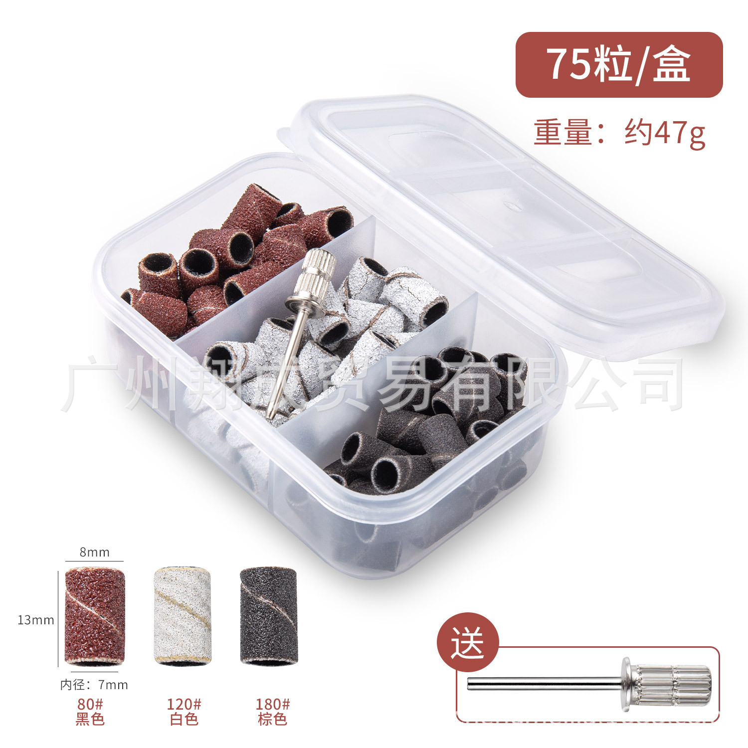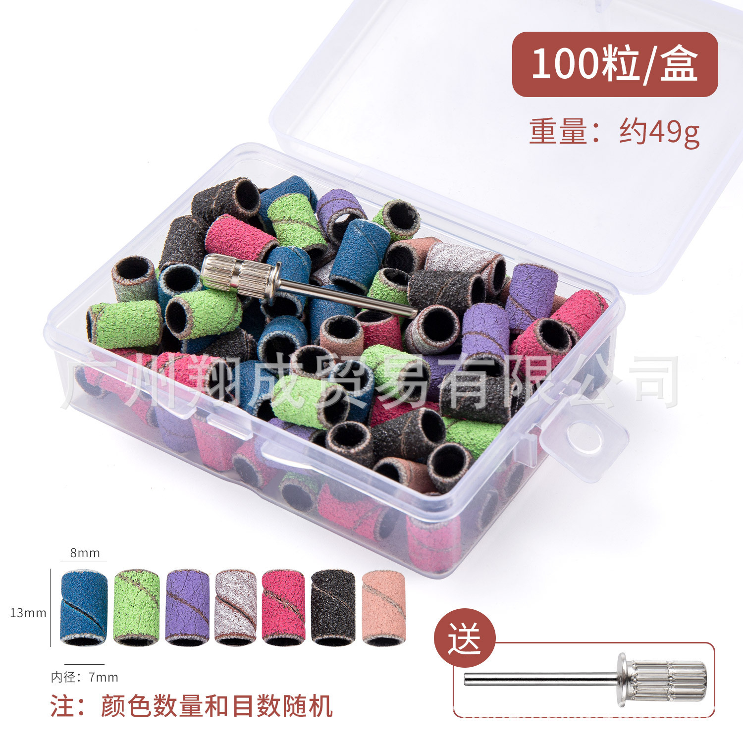 210 개/박스 네일 아트 컬러 샌드 링 세트 컬러 모래 링 축 손톱 제거 조각 연삭 연마 헤드 도구 상자