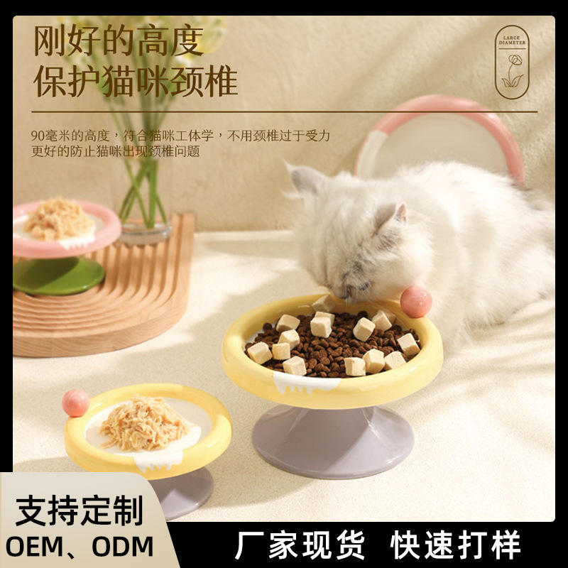 경추를 보호하는 고양이 아이스크림 세라믹 그릇, 고양이와 강아지의 식기, 흘러내림 방지, 청소가 용이한 식기
