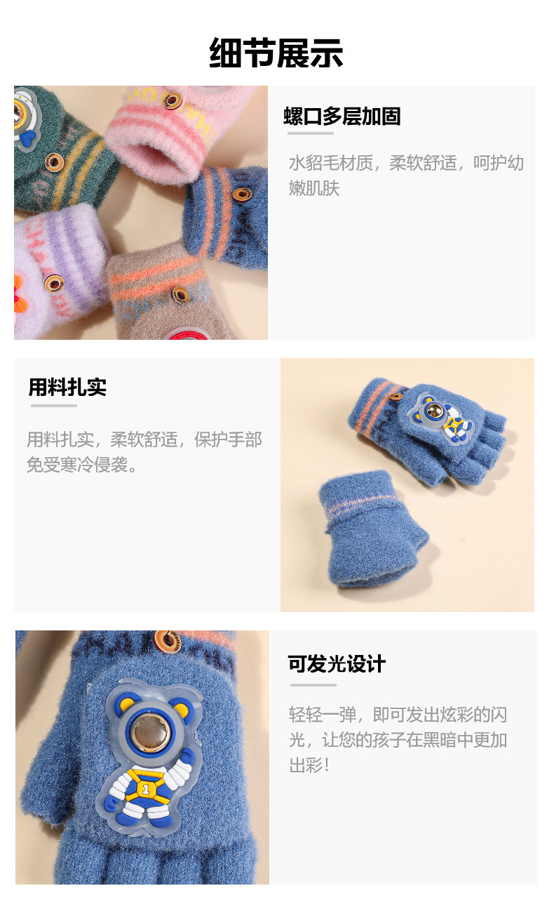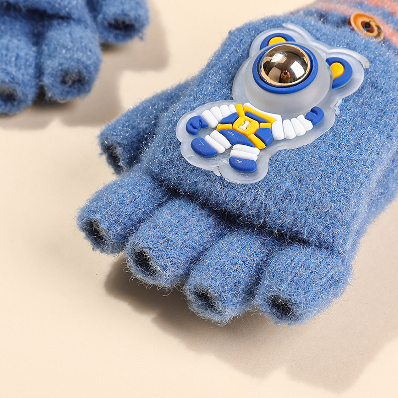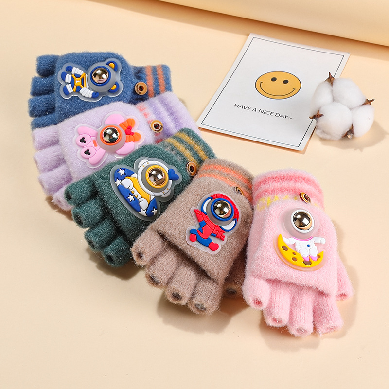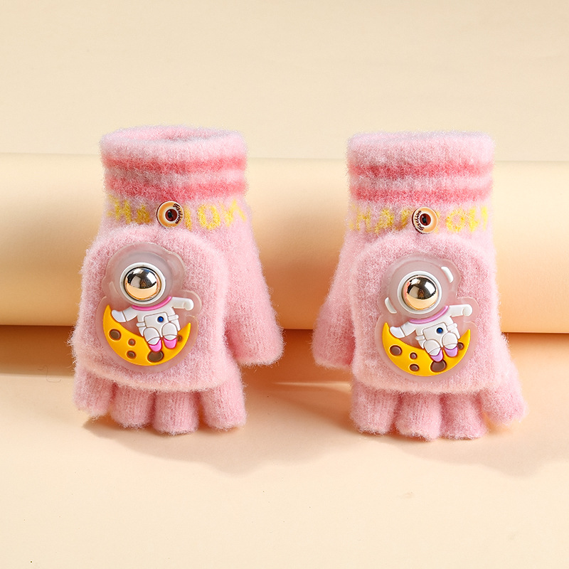 6-10세 남녀 어린이용 우주비행사 형광 반손가락 플립업 장갑, 보온 필기용 장갑, 제조업체 도매스토어 가기