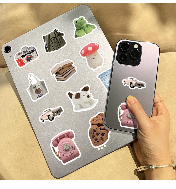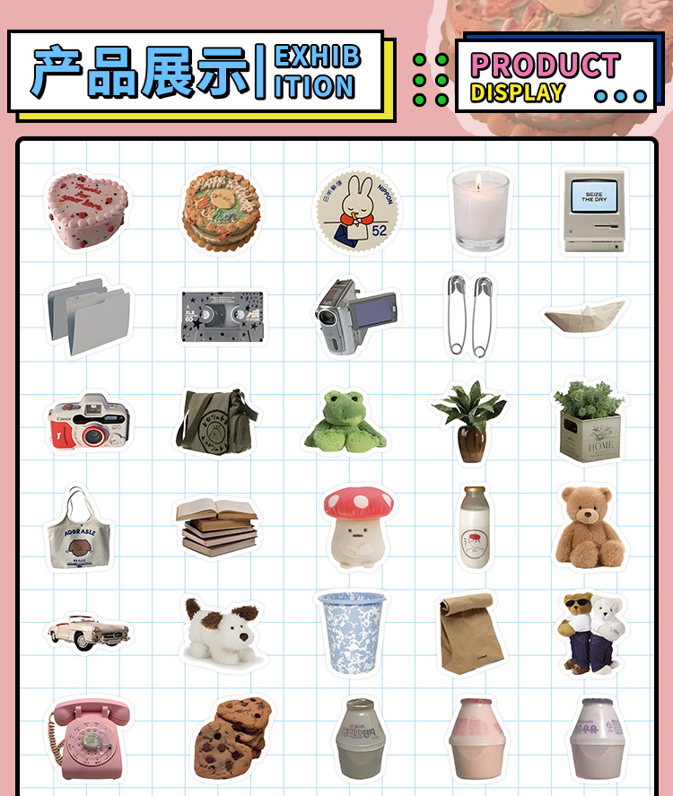 60 만화 곰 낙서 스티커 복고풍 개체 창조적 인 장식 노트북 문구 손 계정 스티커 도매