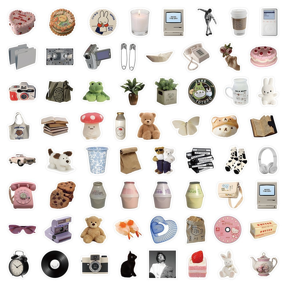 60 만화 곰 낙서 스티커 복고풍 개체 창조적 인 장식 노트북 문구 손 계정 스티커 도매스토어 가기