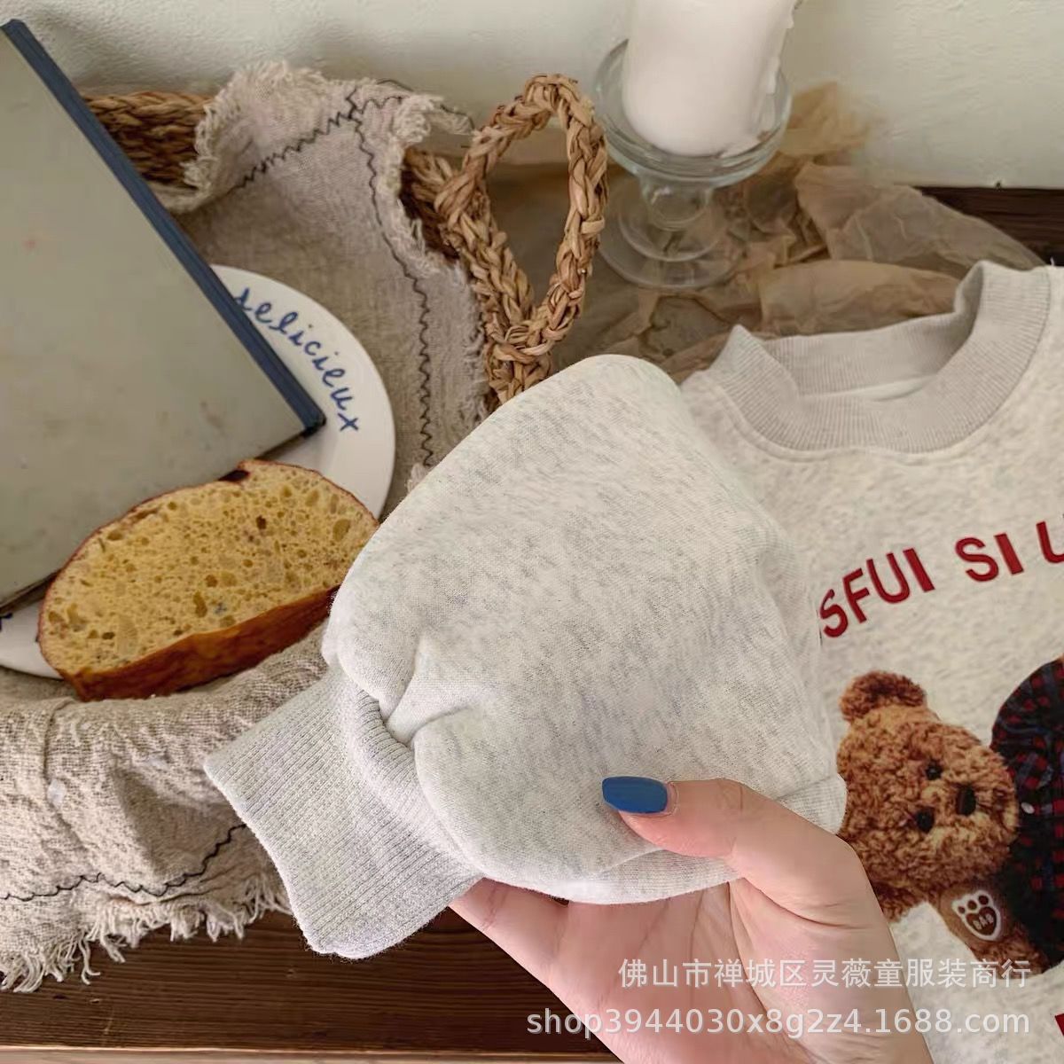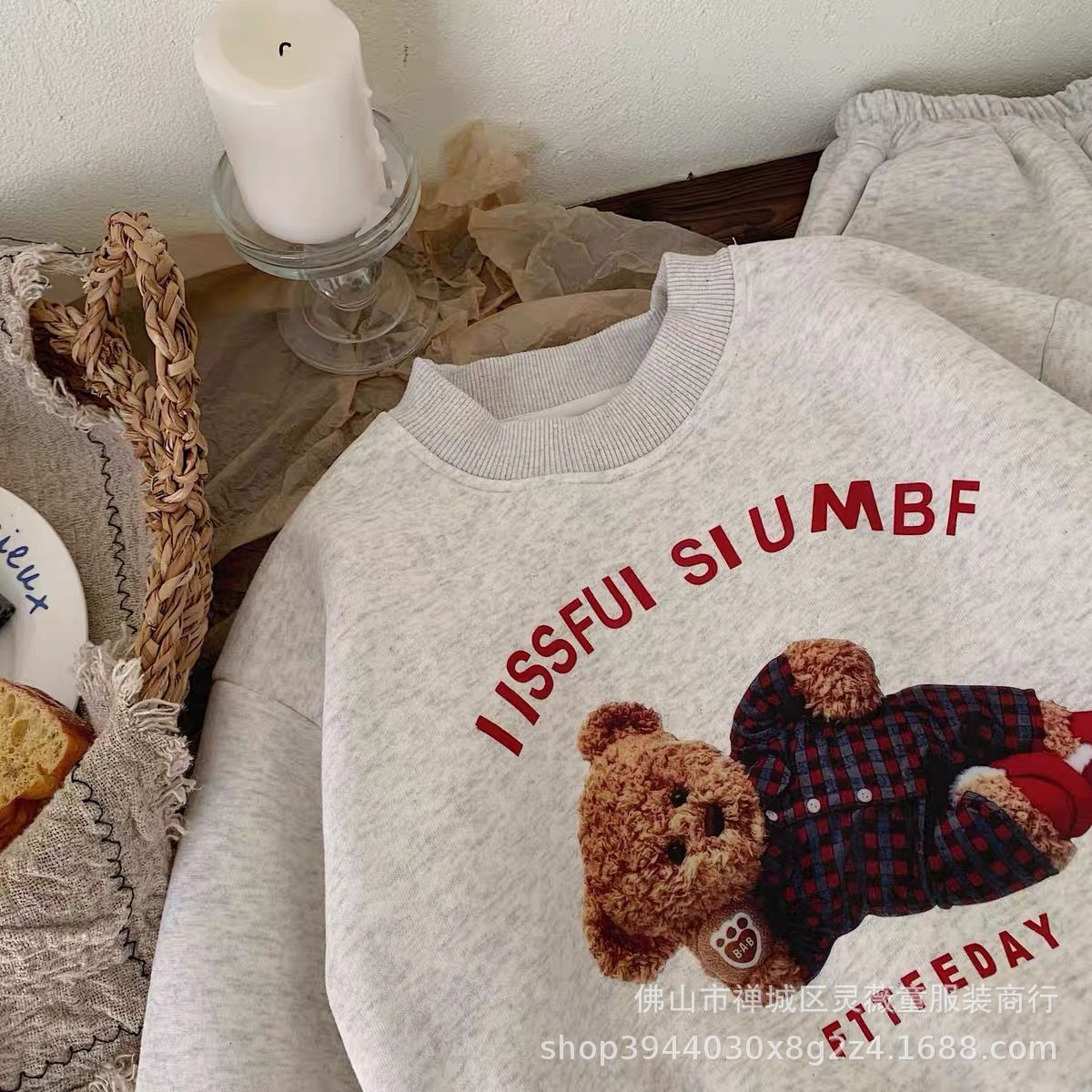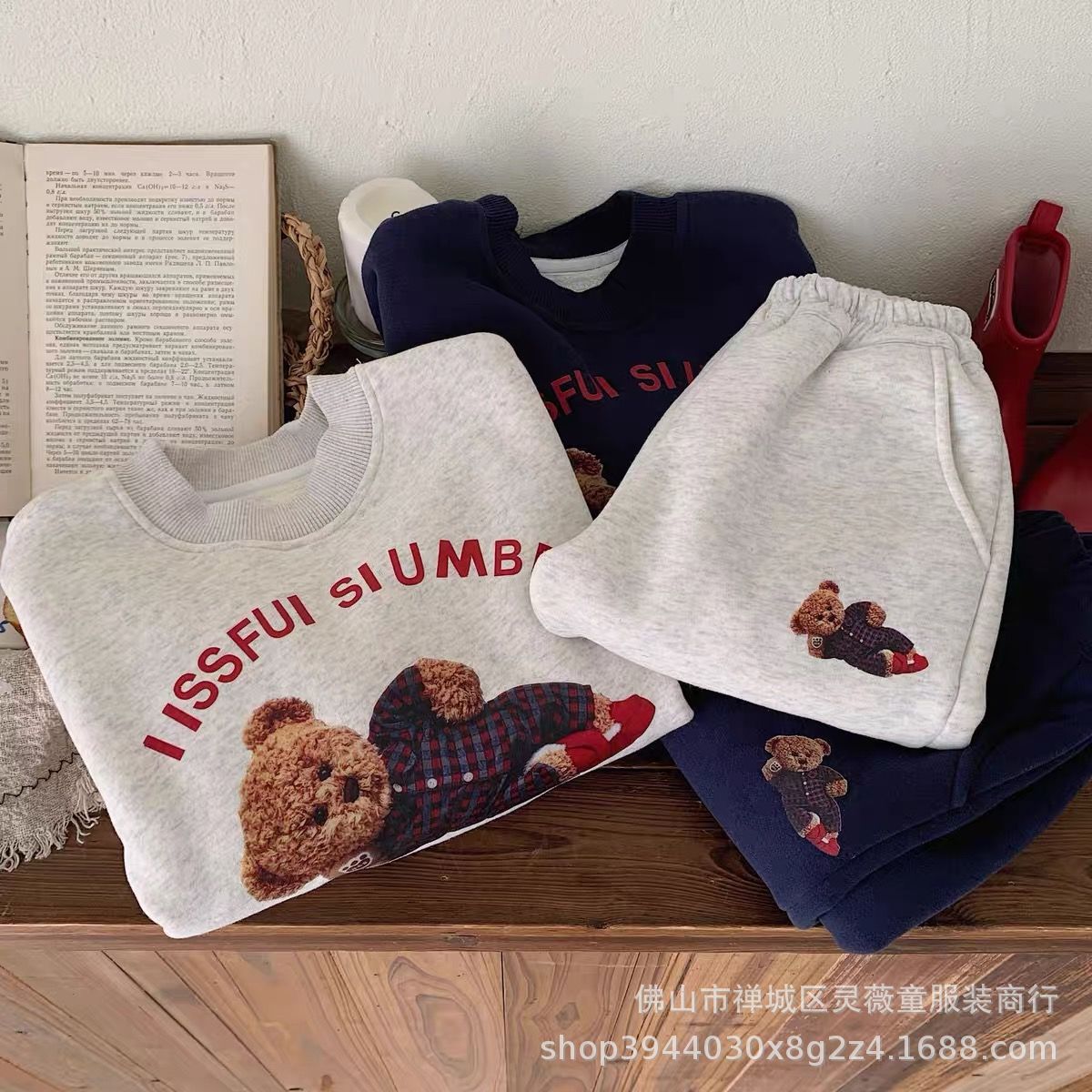 남아 여아용 후리스 스웨트셔츠, 가을 겨울 아동복 세트, 2026년 한국판 신상 만화 곰돌이 아기 두꺼운 후리스 후드티스토어 가기