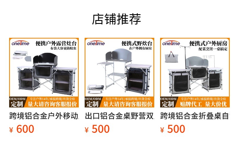 야외 모바일 주방 모바일 주방 캠핑 피크닉 테이블 조합 국경 알루미늄 합금 캠핑 접이식 테이블스토어 가기