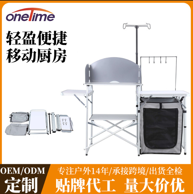 야외 모바일 주방 모바일 주방 캠핑 피크닉 테이블 조합 국경 알루미늄 합금 캠핑 접이식 테이블