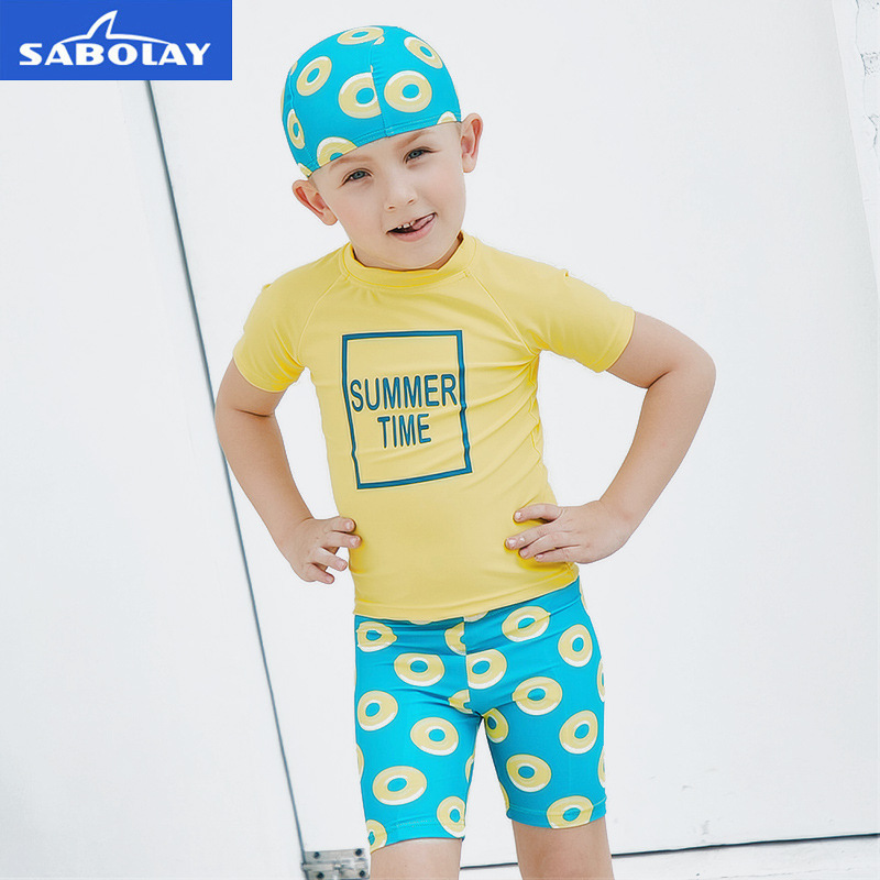 수영복 Shabaolai 소년 330 사용자 정의 한국 in 스타일 분할 선 스크린 수영복 어린이를위한 반팔 속건 수영복스토어 가기