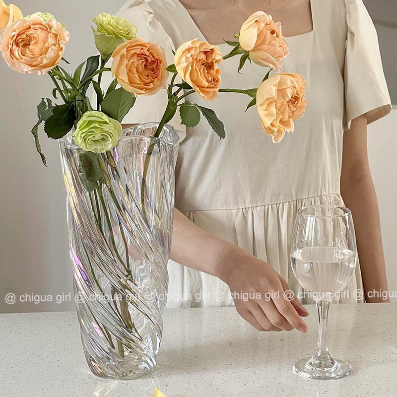 아메리칸 스타일 라이트 럭셔리 류큐 라이트 수경 유리 꽃병 거실 모델 룸 호텔 꽃 배열 장식 용품 장식품 공예스토어 가기