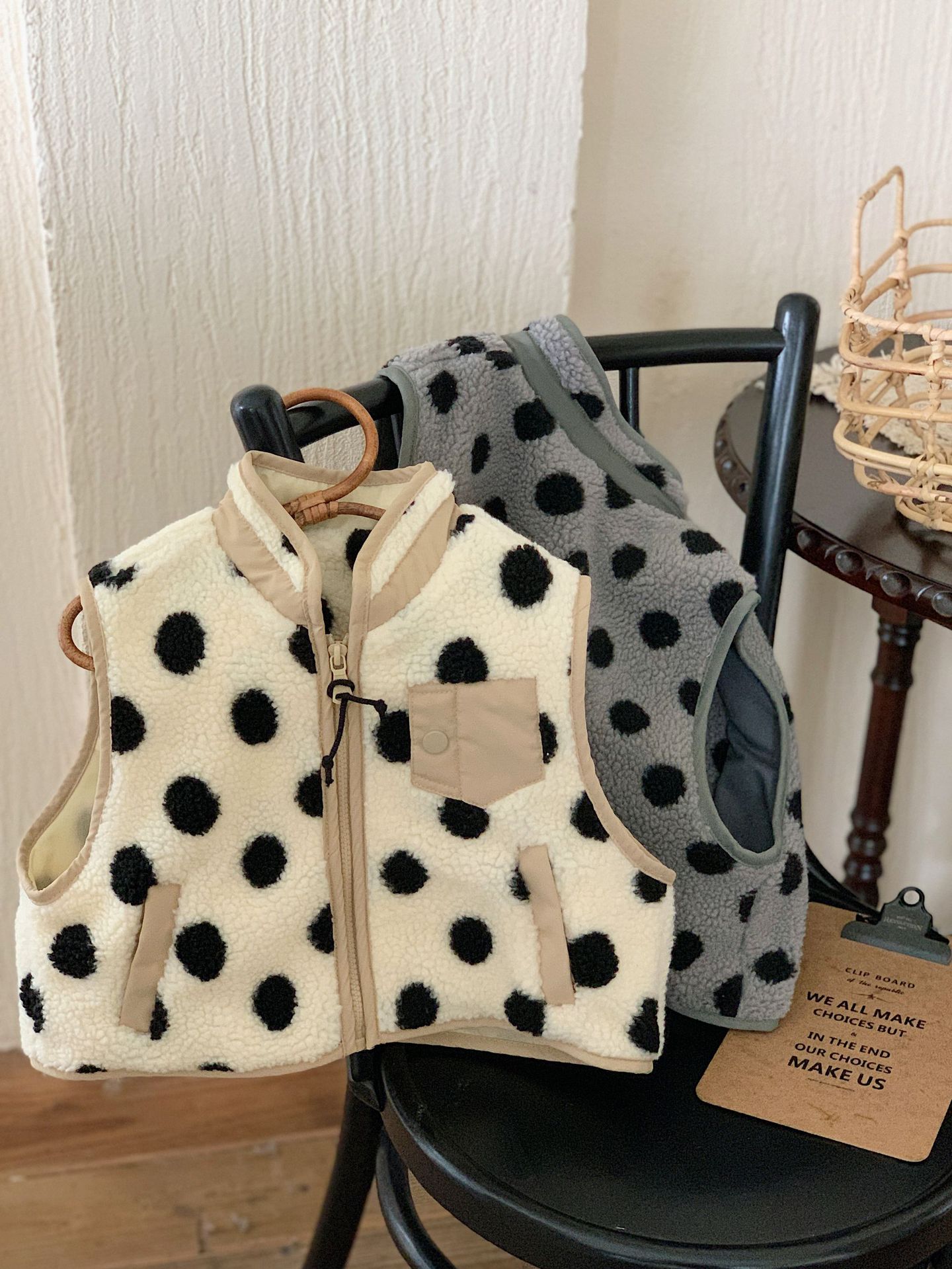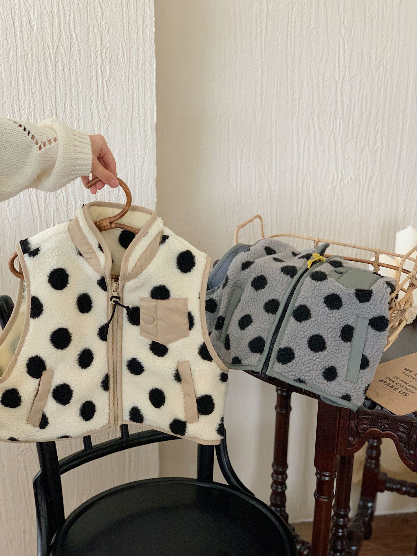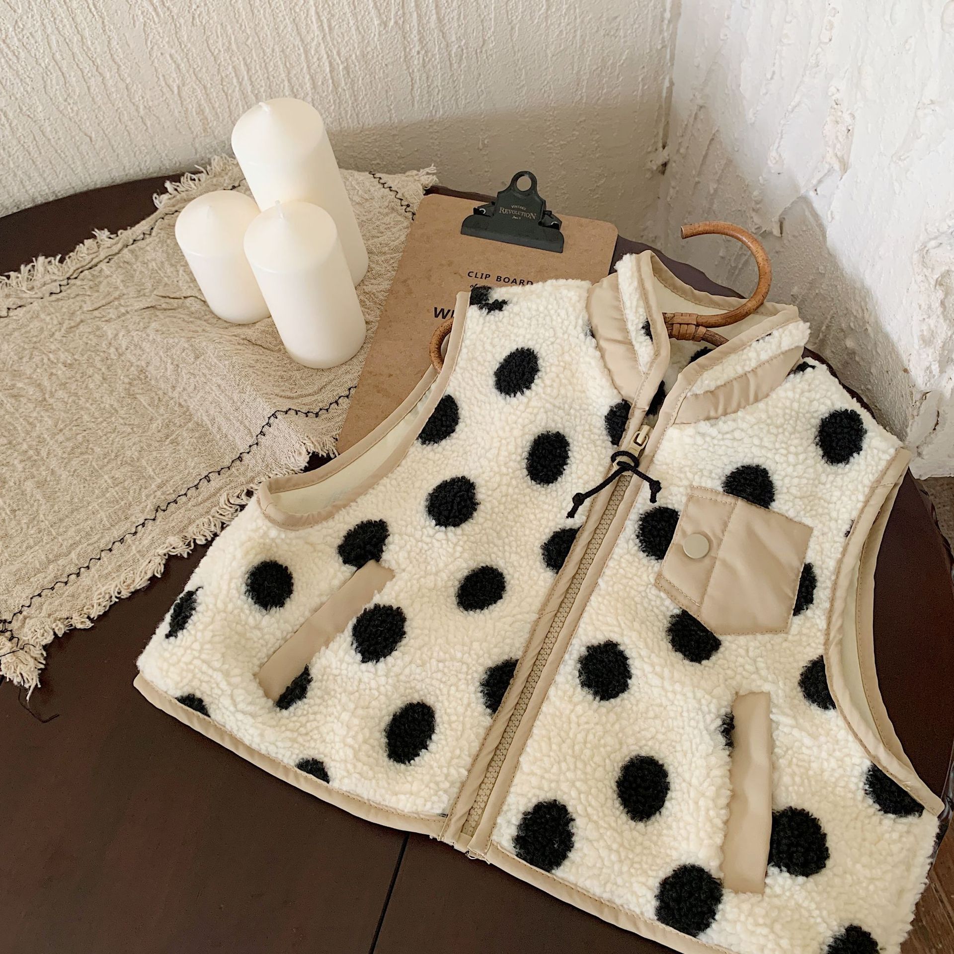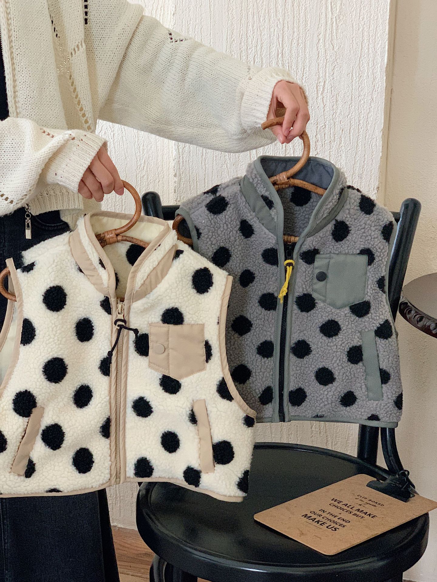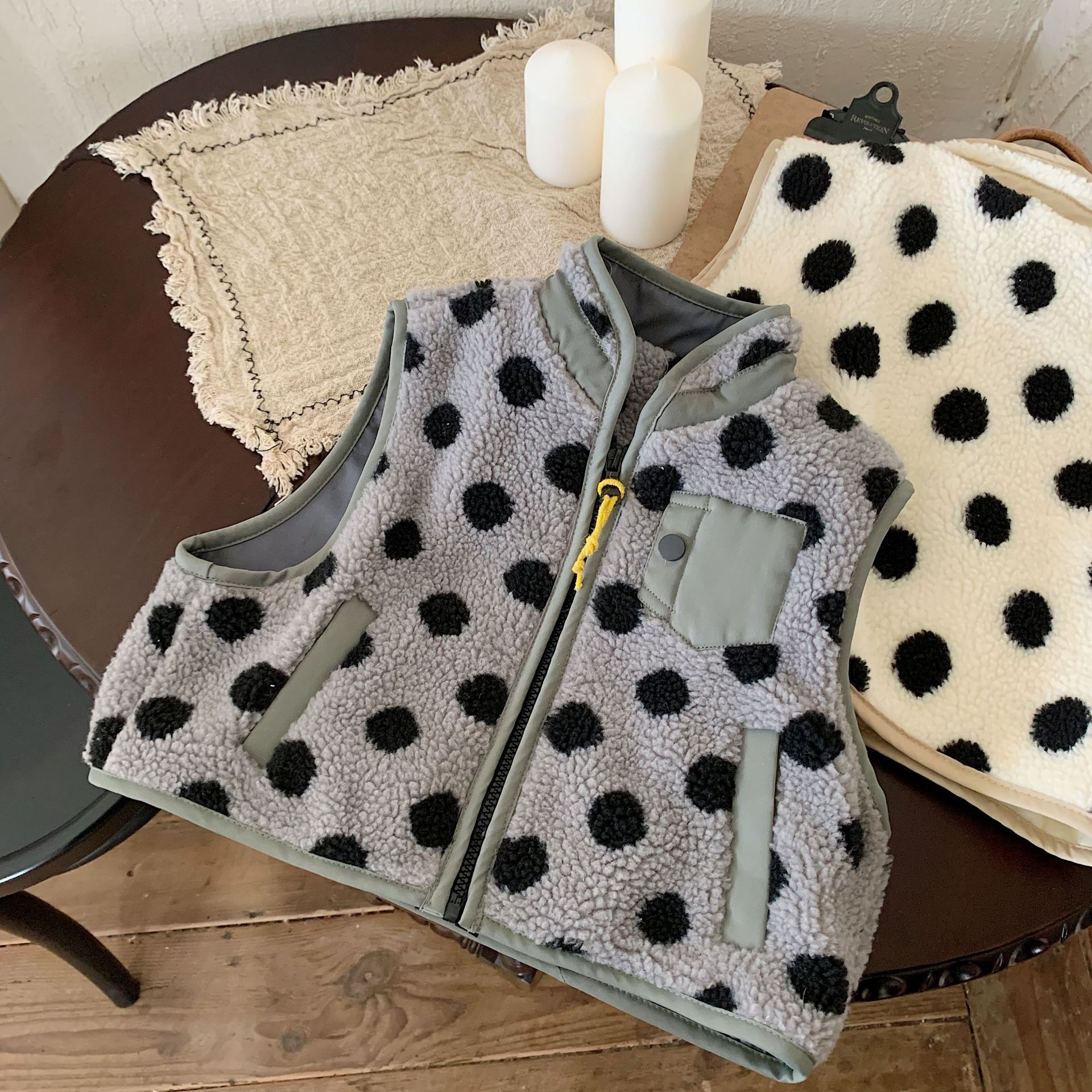 어린이 조끼 2025년 신상 겨울용 남녀공용 도트 무늬 플리스 조끼 아기 캐주얼 상의 두꺼운스토어 가기