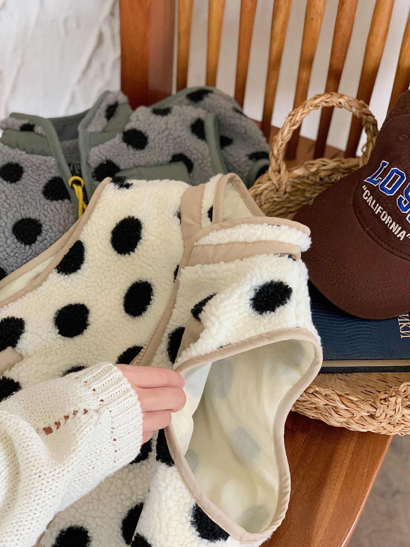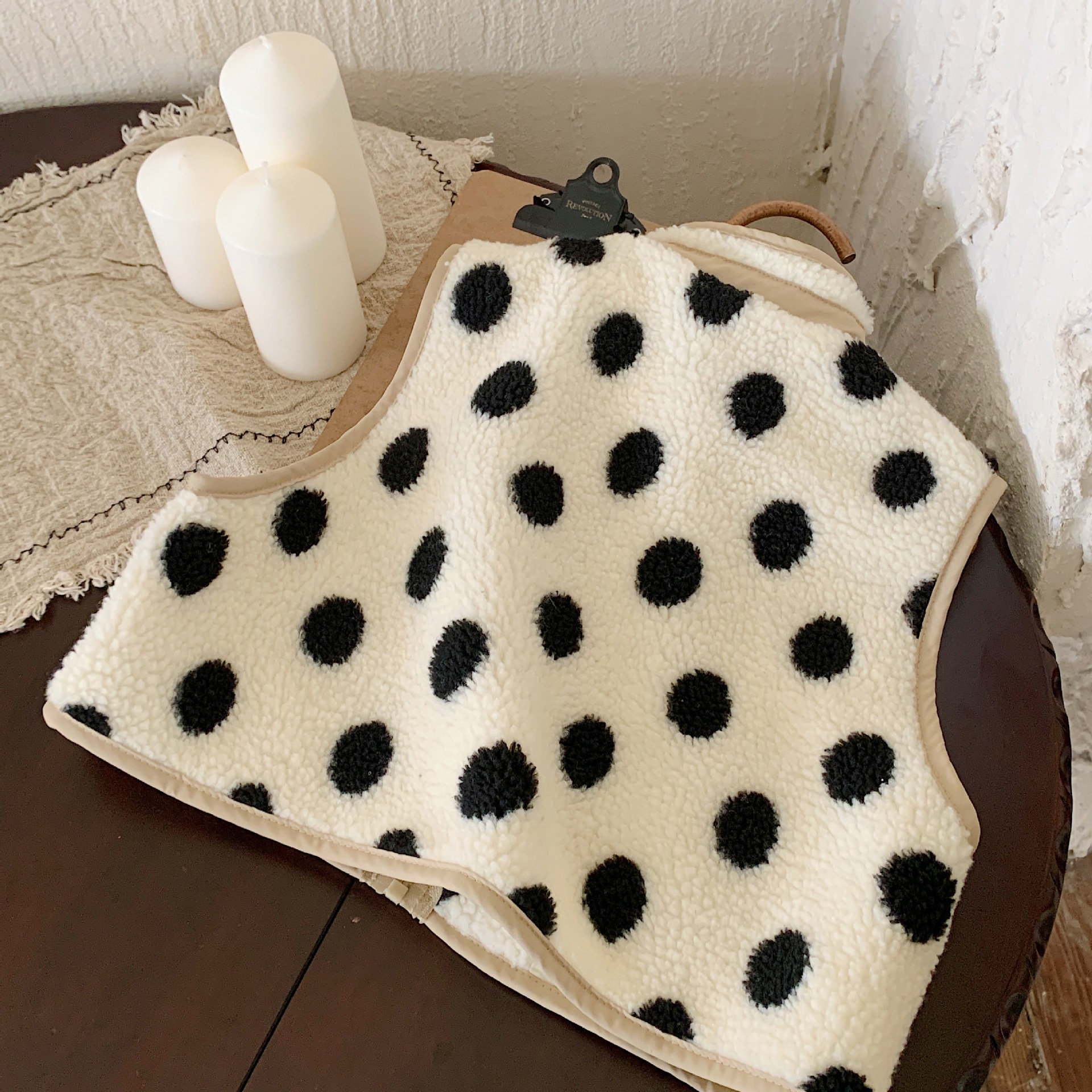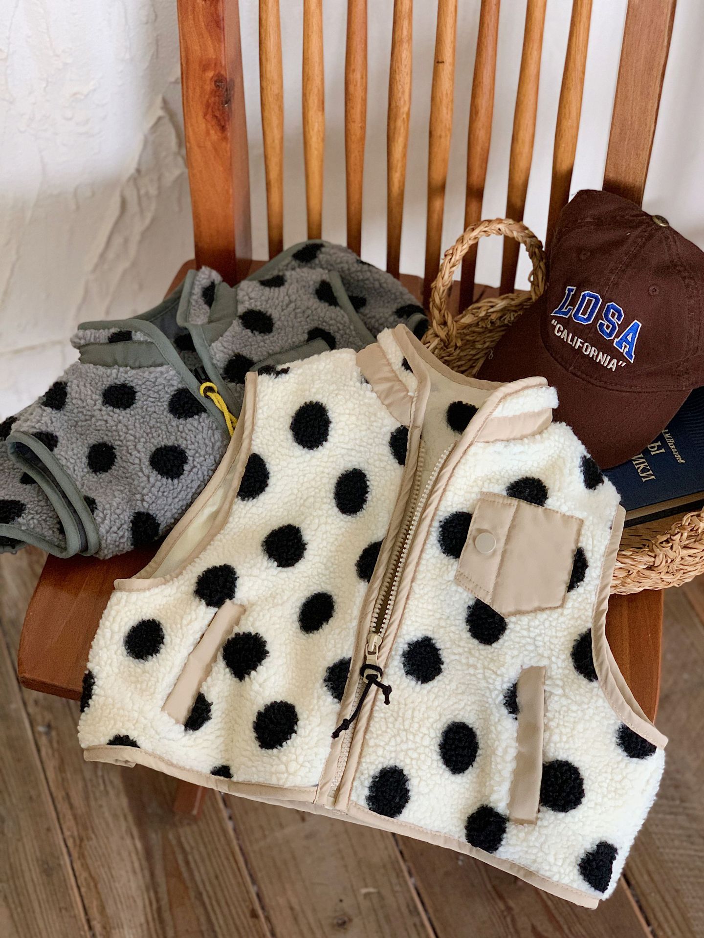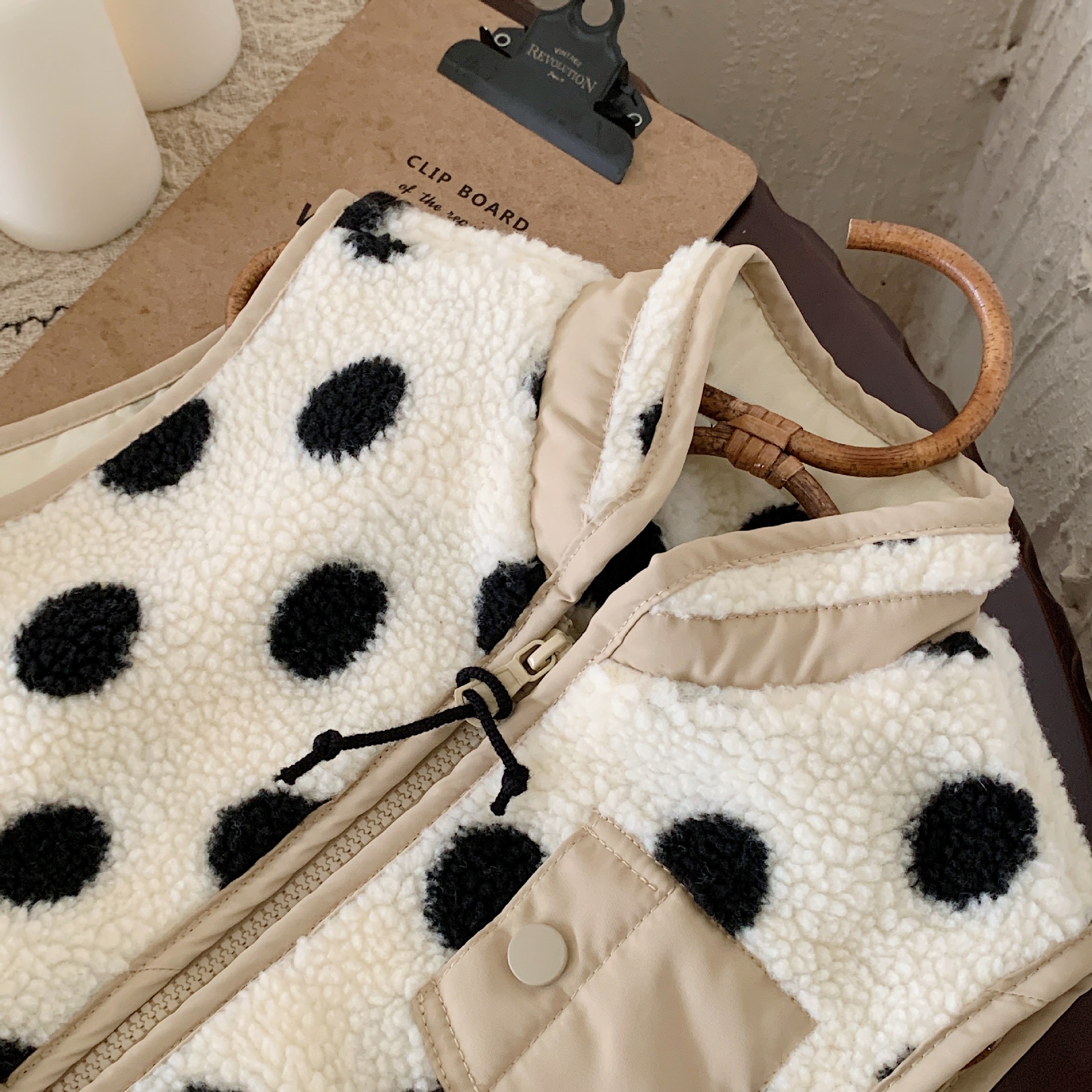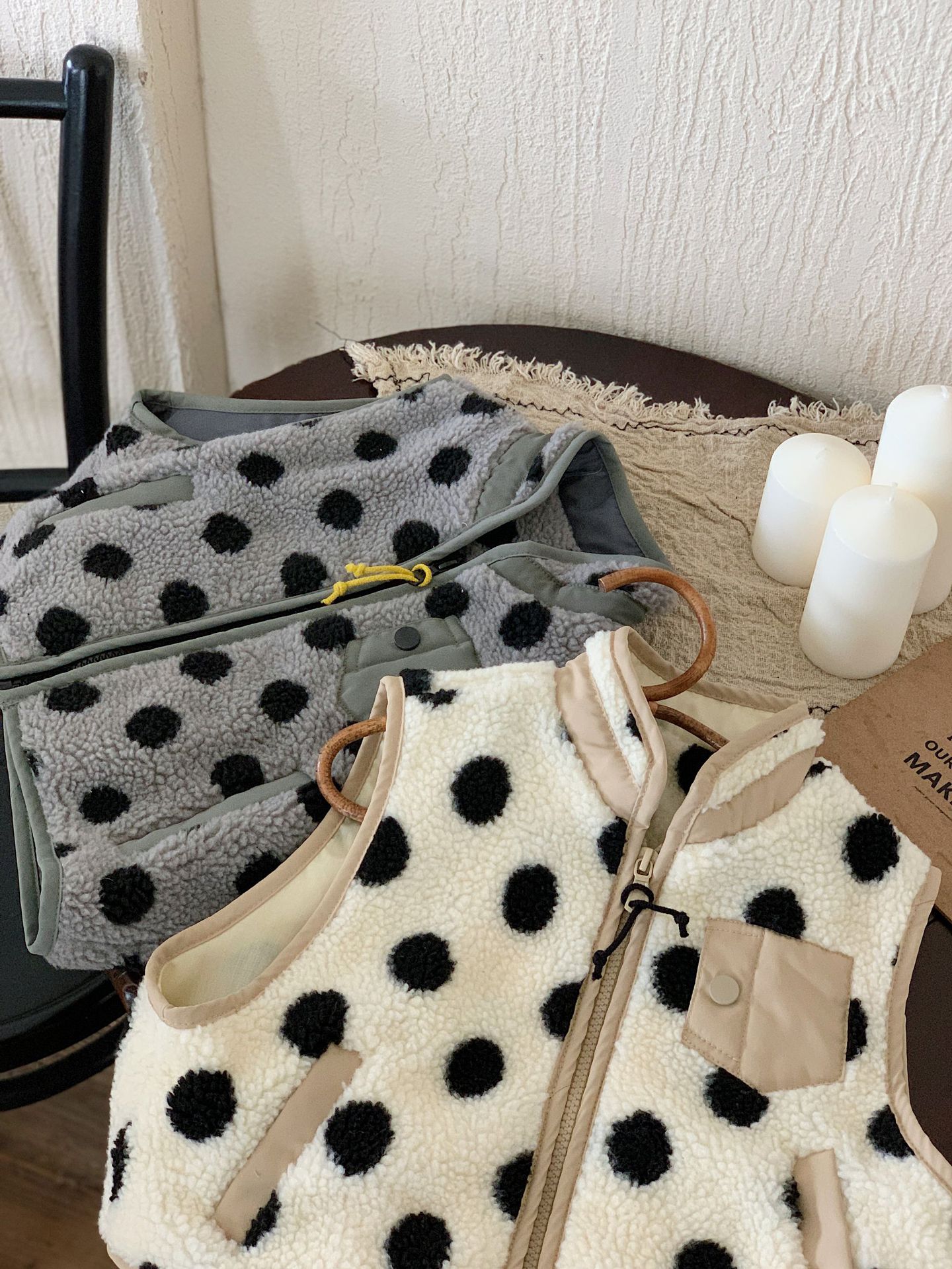 어린이 조끼 2025년 신상 겨울용 남녀공용 도트 무늬 플리스 조끼 아기 캐주얼 상의 두꺼운스토어 가기