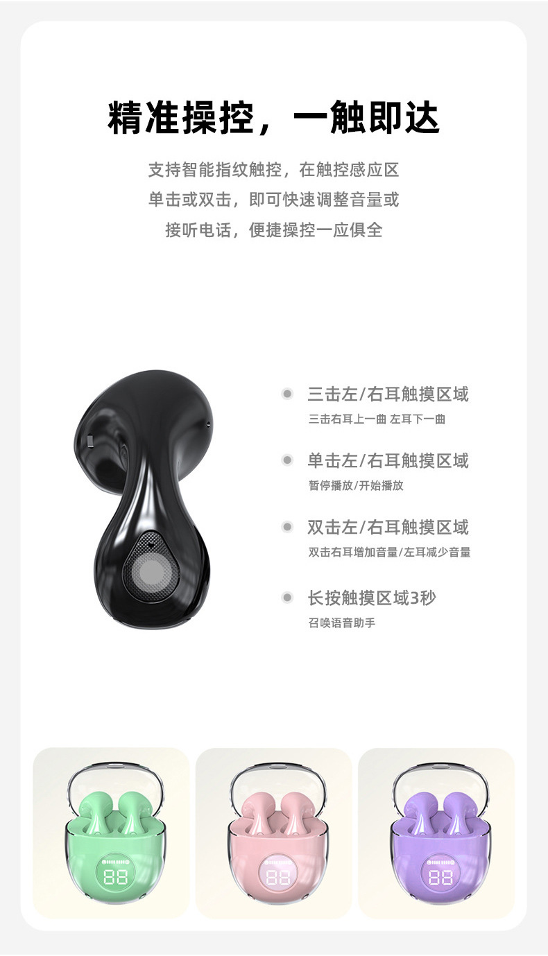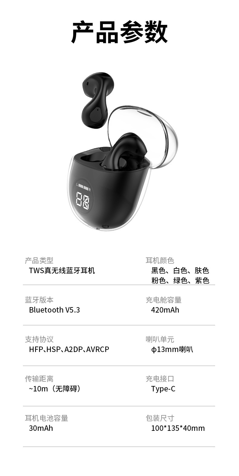 투명 TWS 블루투스 헤드셋 바 이노 럴 무선 디지털 스테레오 스포츠 인 이어 충전실 긴 배터리 수명