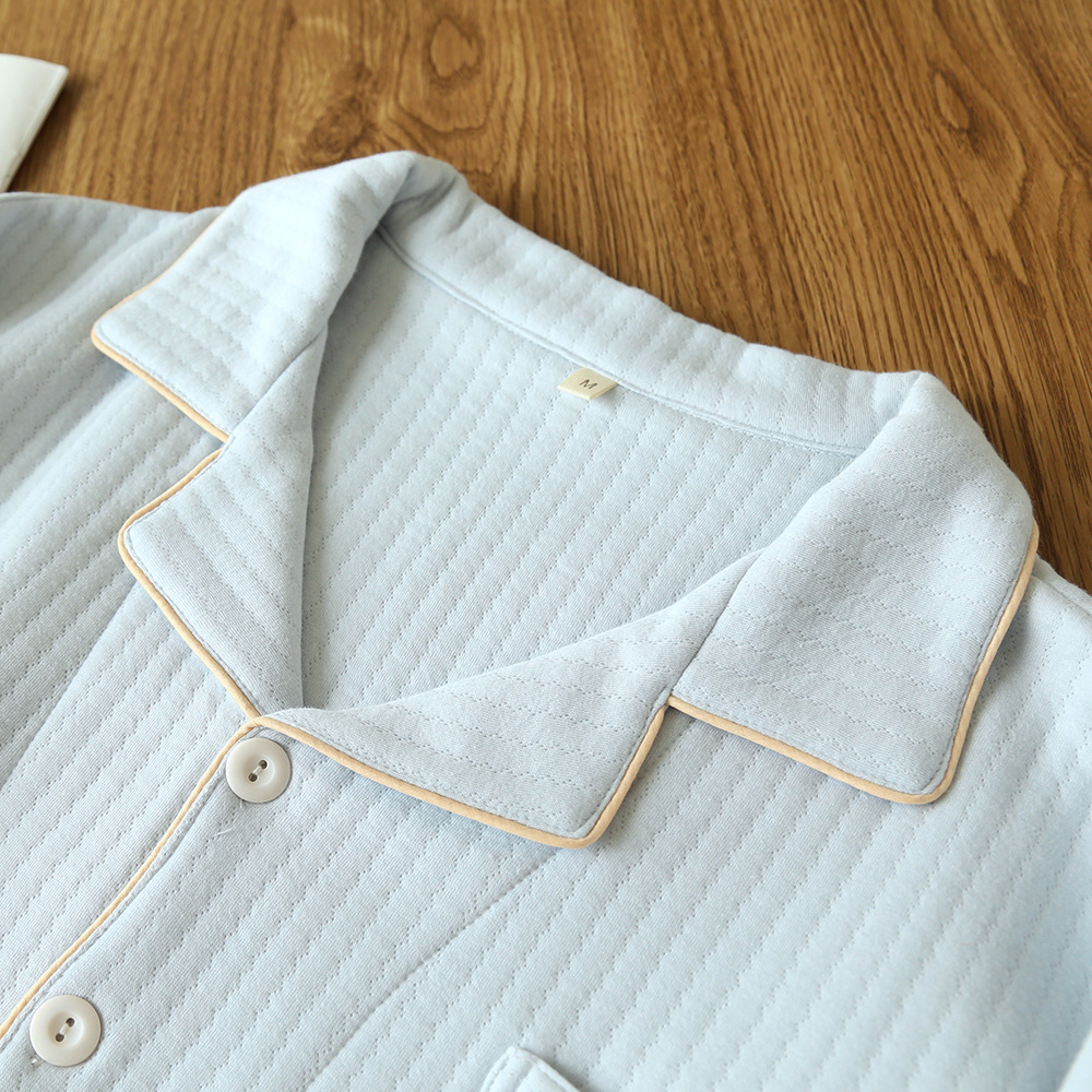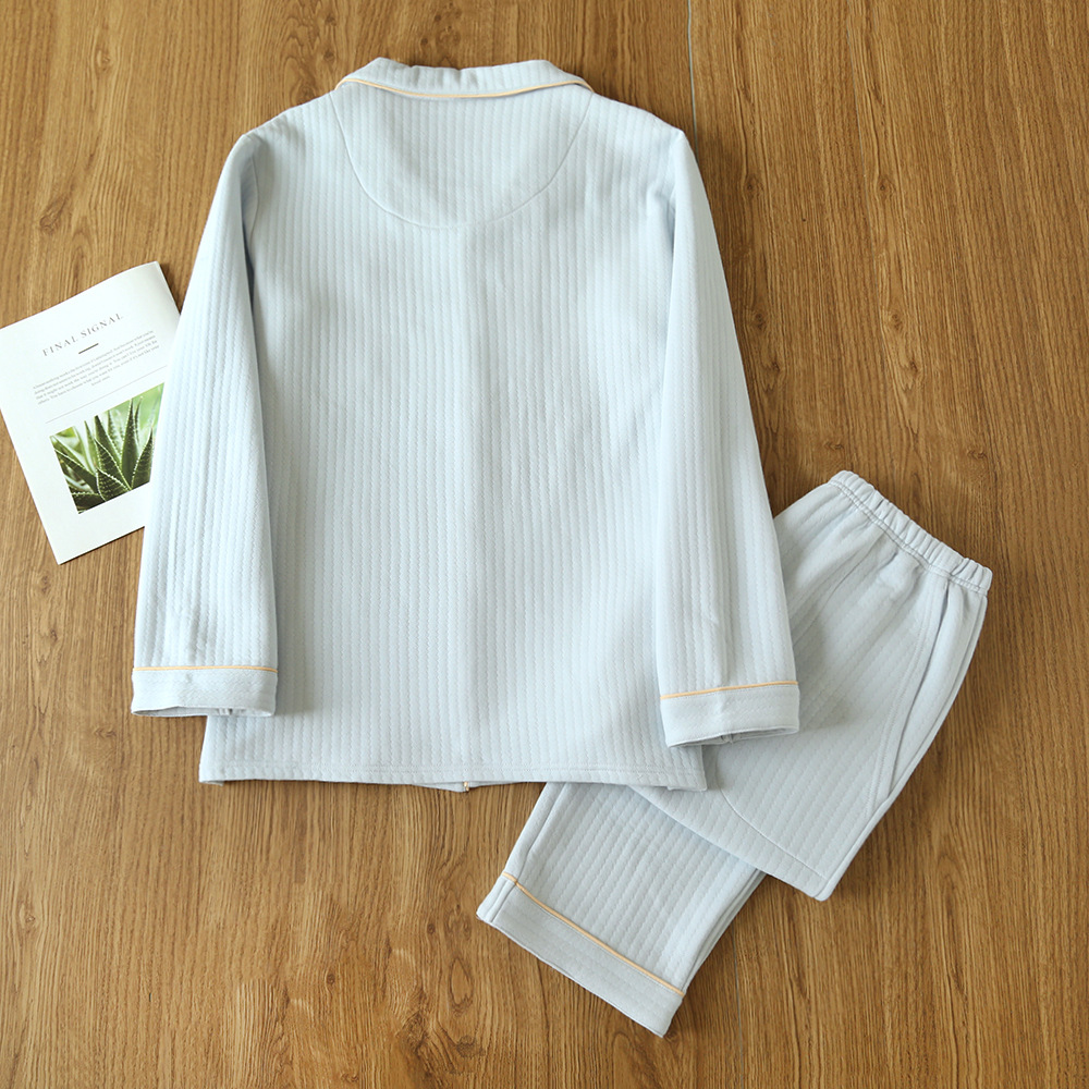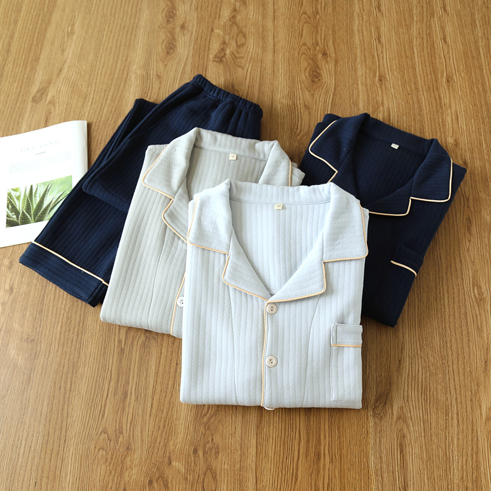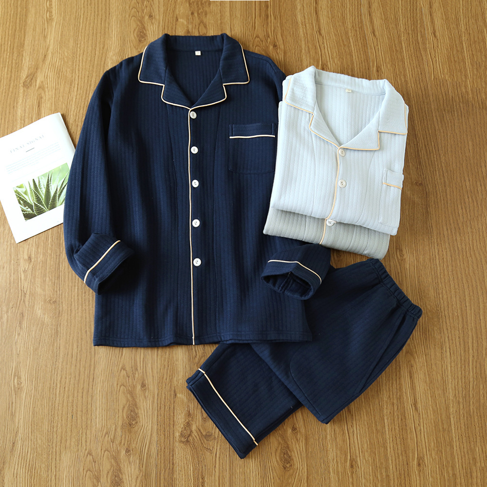 잠옷 남자의 가을과 겨울 두꺼운 순면 긴 소매 가정 옷 얇은 면 샌드위치 공기 면 세트 단색 단순스토어 가기