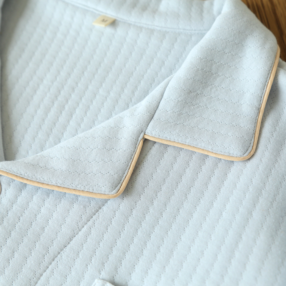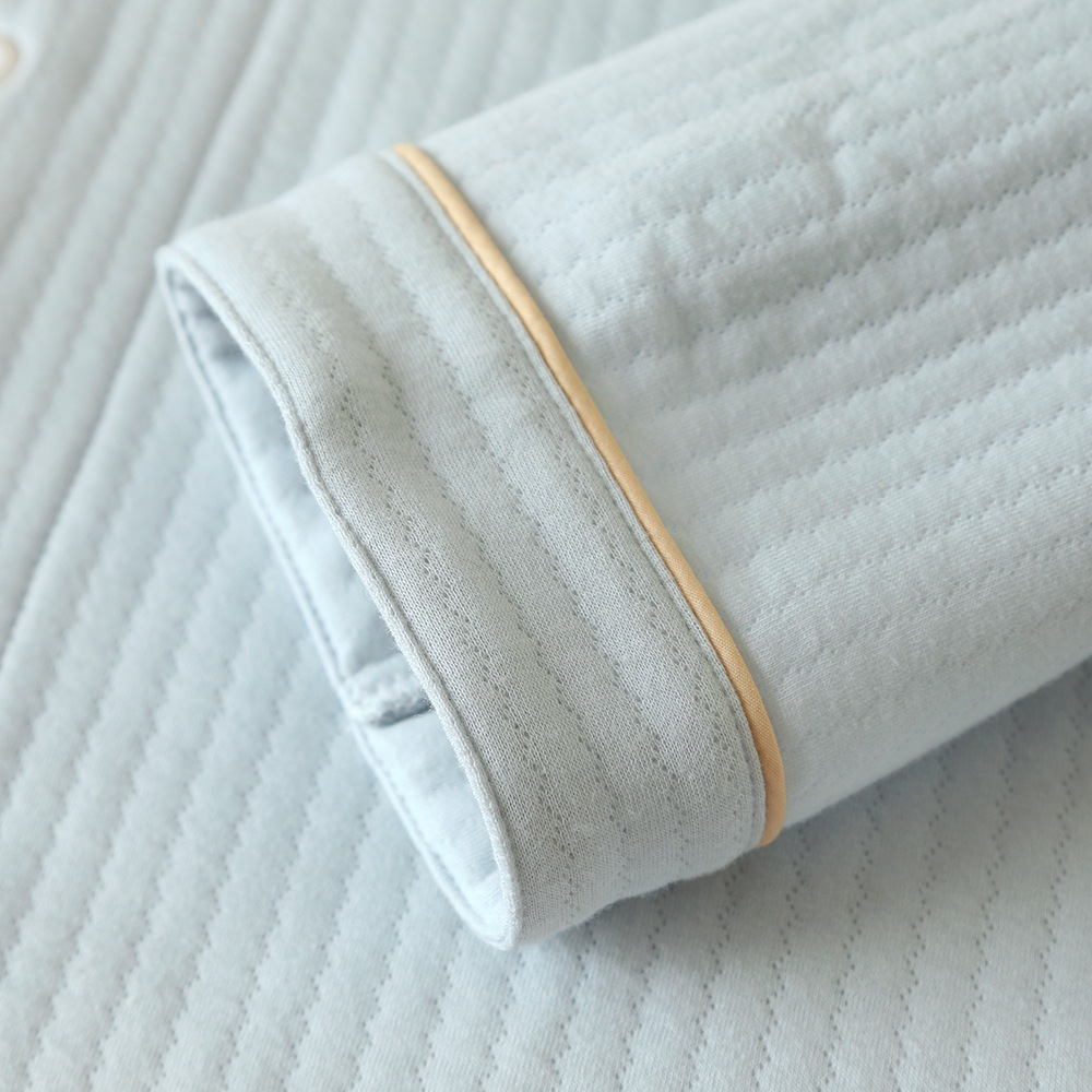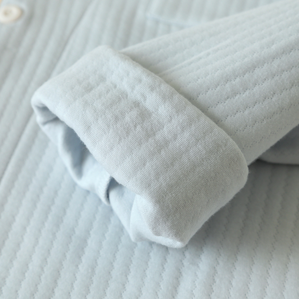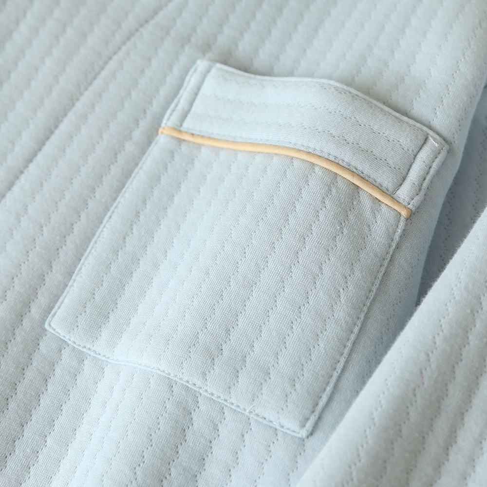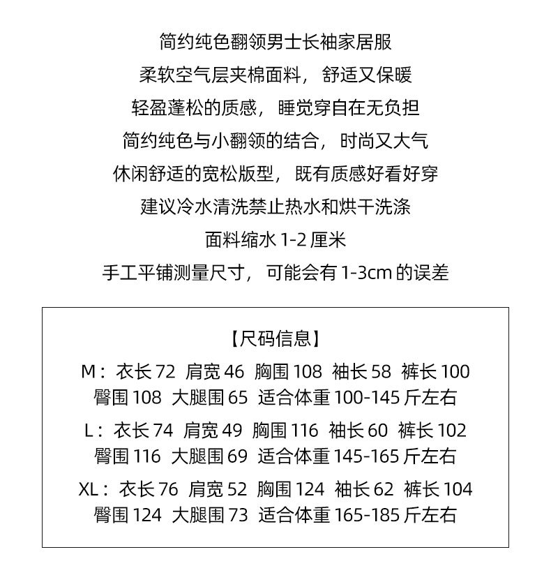 잠옷 남자의 가을과 겨울 두꺼운 순면 긴 소매 가정 옷 얇은 면 샌드위치 공기 면 세트 단색 단순스토어 가기