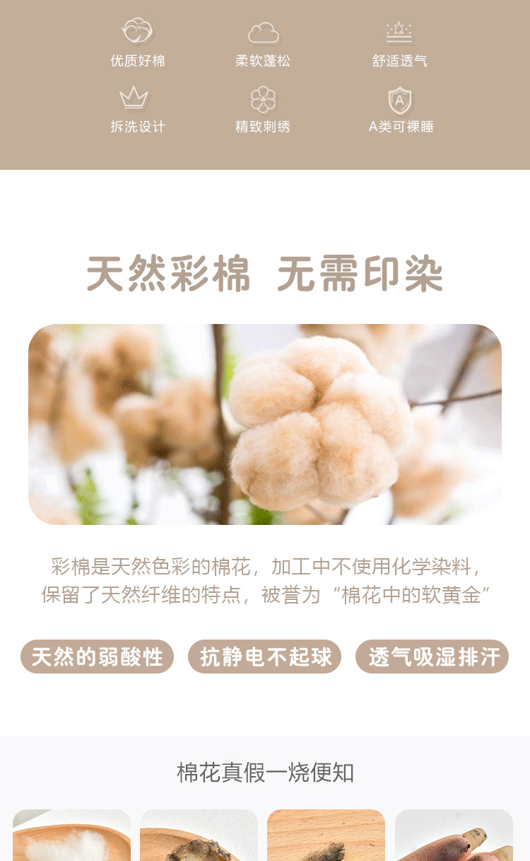 采用天然有机彩棉,无任何印染