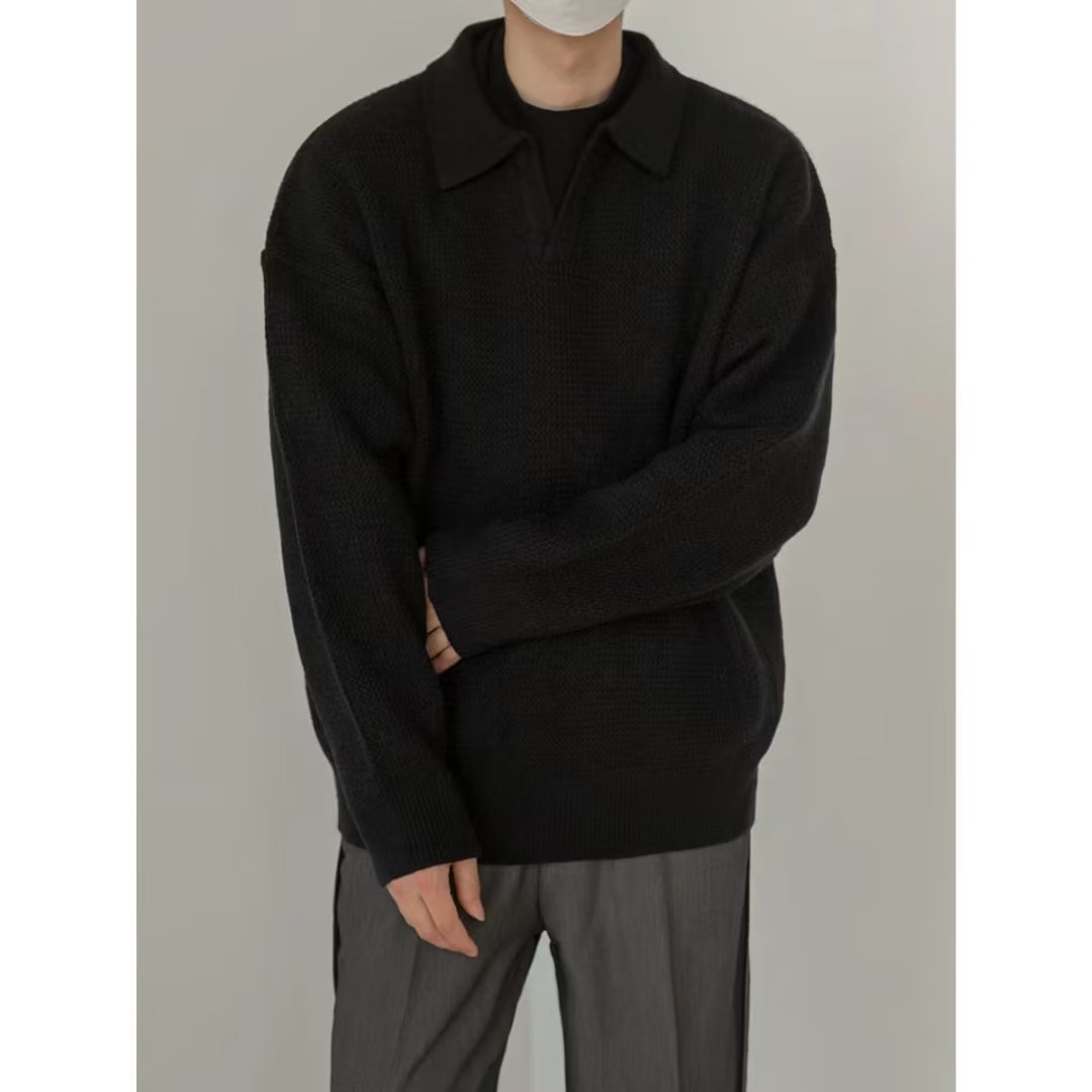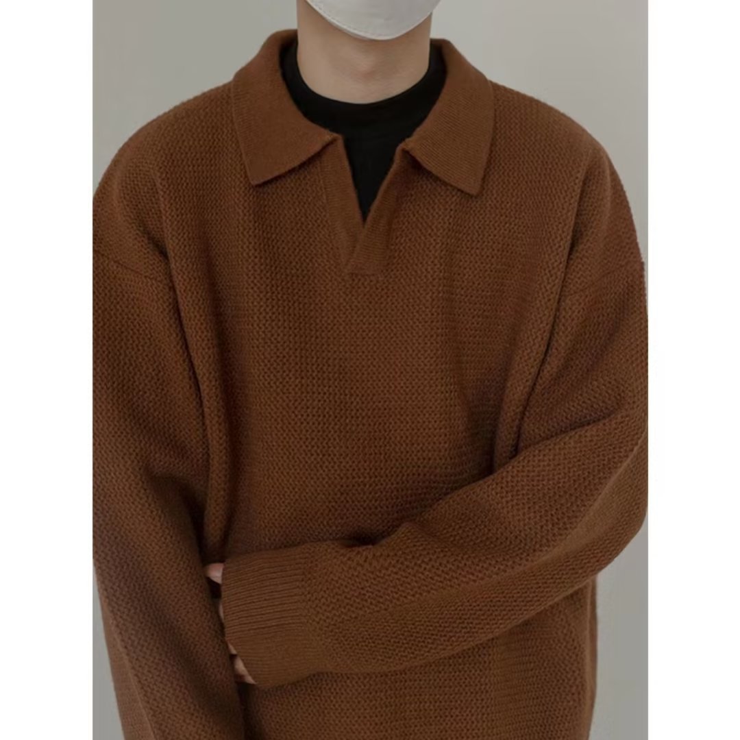 미국 복고풍 카키 칼라 스웨터 남자의 봄과 가을 새로운 게으른 스타일 느슨한 일본 니트 셔츠 재킷스토어 가기