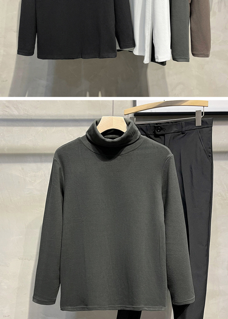 양면 벨벳 풀오버 긴팔 티셔츠 남성용 하이넥 슬림핏 조커 두꺼운 가을 옷 학생 패션 공장 아울렛