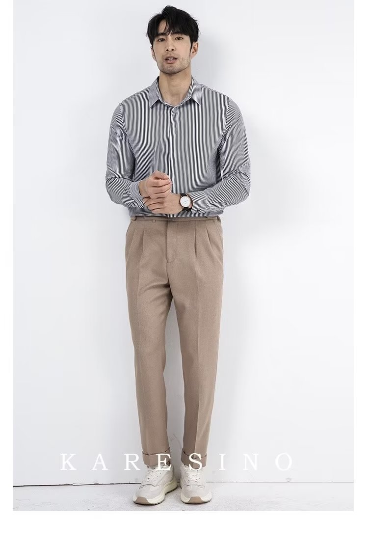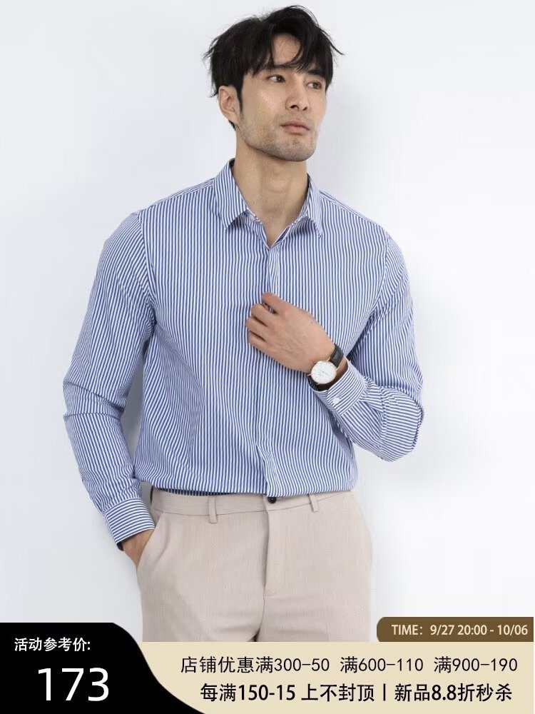 봄과 가을 비즈니스 정장 착용 가벼운 럭셔리 스트라이프 스트레치 셔츠 남성용 긴 소매 트렌디 한 숨겨진 버클 하이 엔드 슬림 핏 하이 엔드 캐주얼