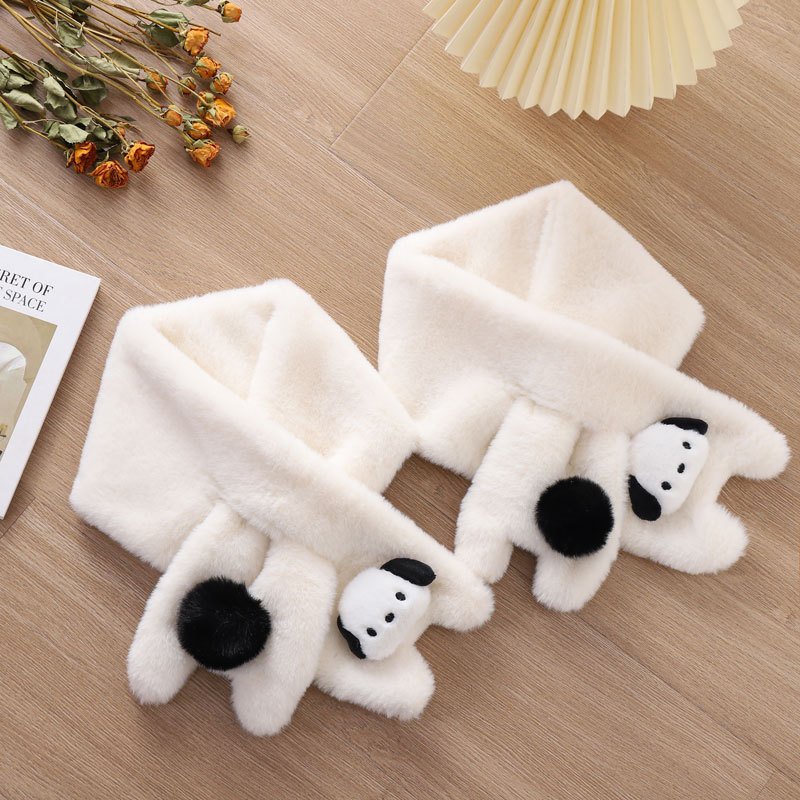 가을과 겨울 따뜻한 귀여운 흰색 봉제 스카프 소녀 만화 스카프 새로운 겨울 두껍게 모든 매칭 칼라