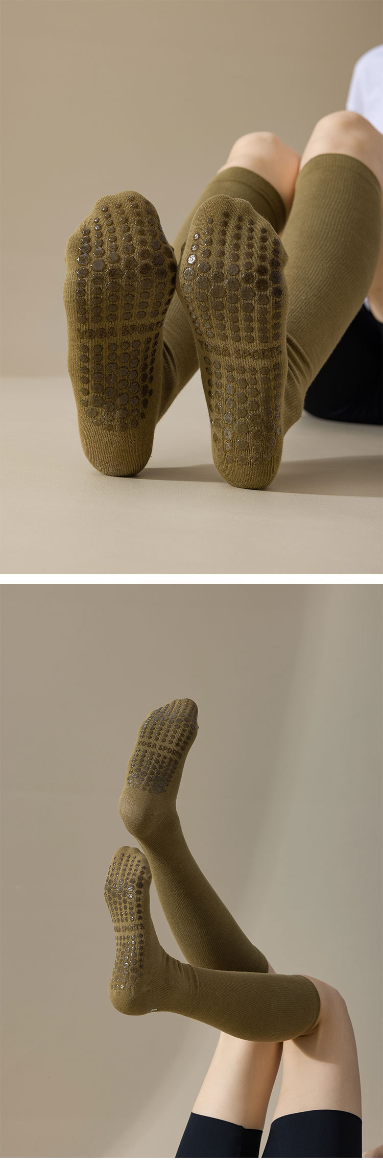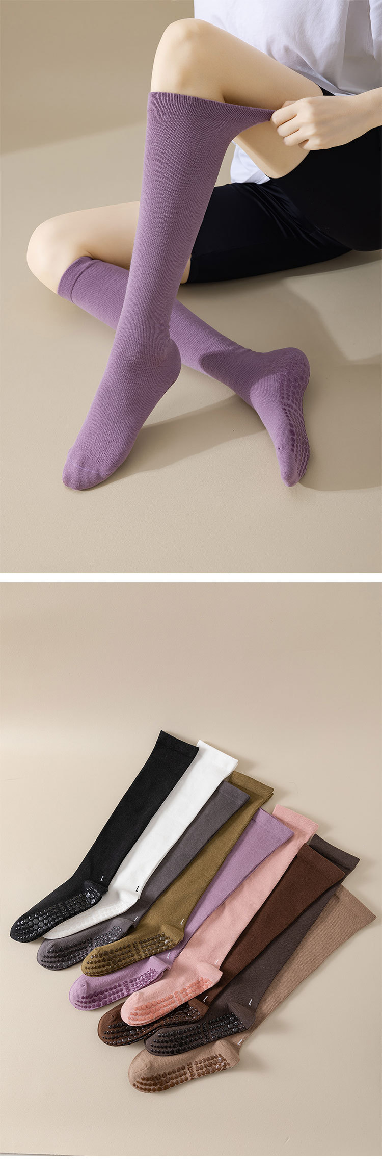 압력 양말 어린이 요가 양말 하이면 단색 송아지 양말 도매 피트니스 댄스 미끄럼 방지 필라테스 스타킹