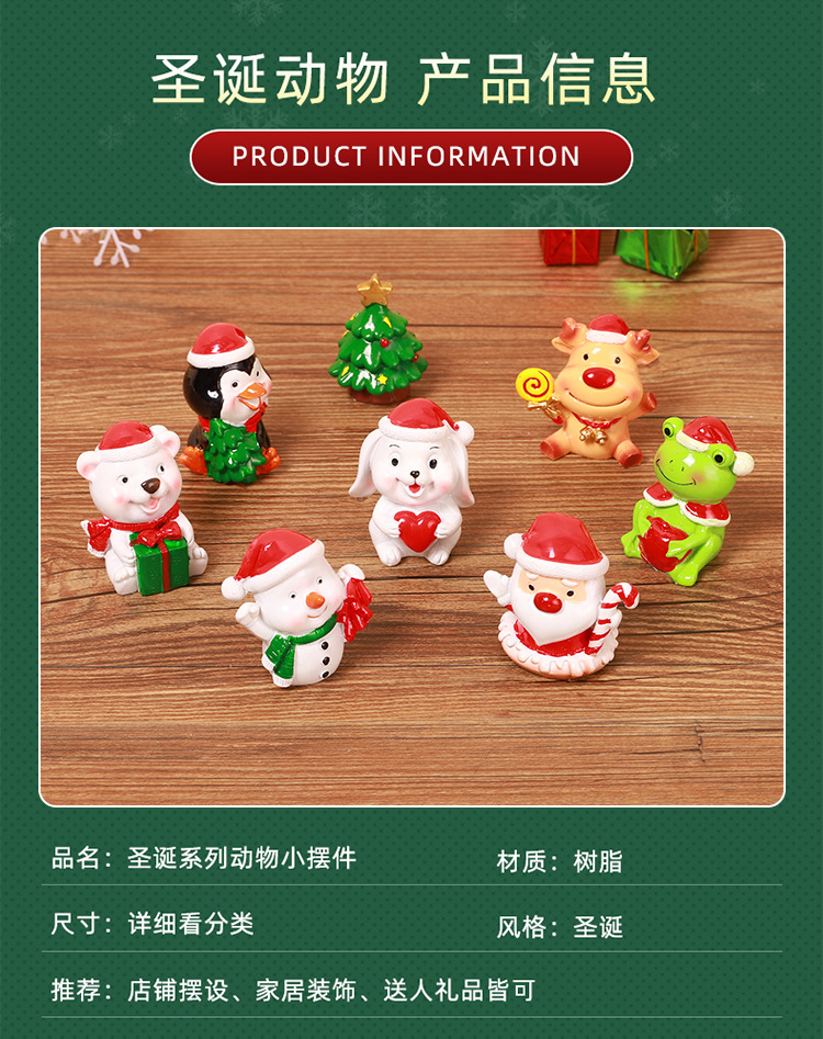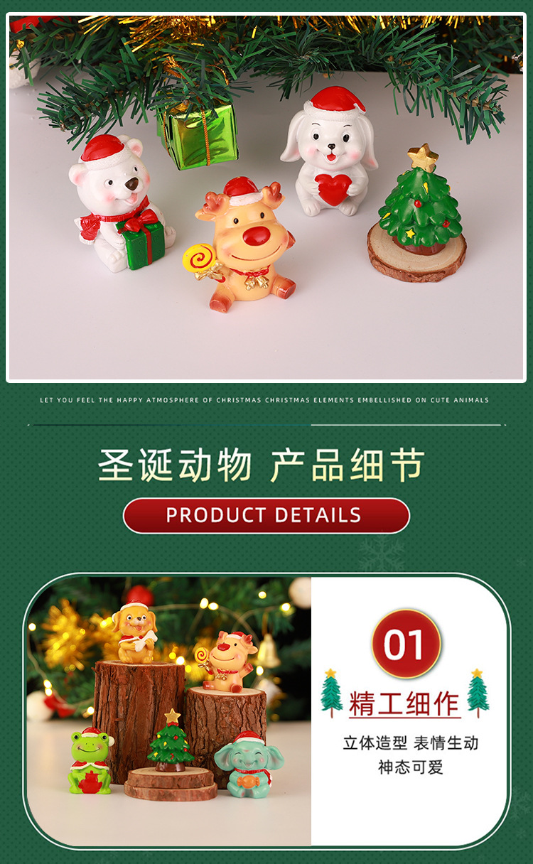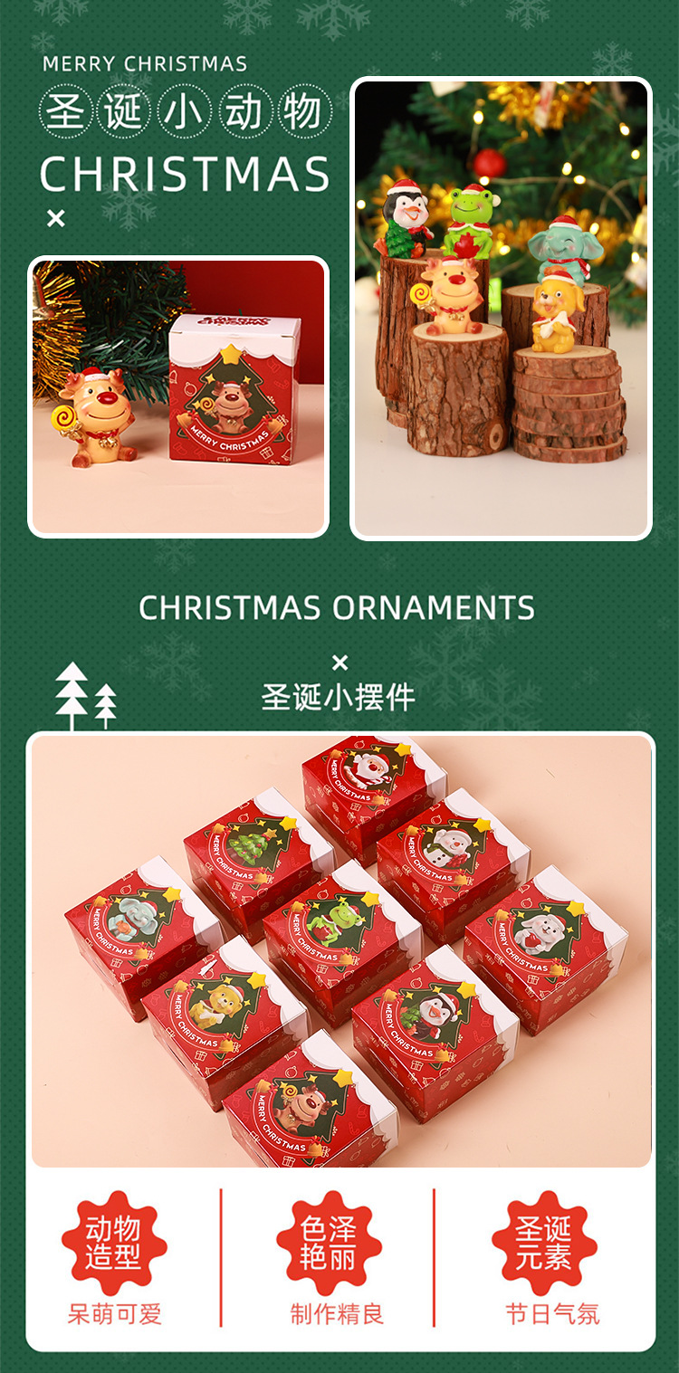 새로운 크리스마스 동물 작은 장식품 미니 귀여운 크리스마스 분위기 장식 어린이 작은 동물 데스크탑 장식스토어 가기