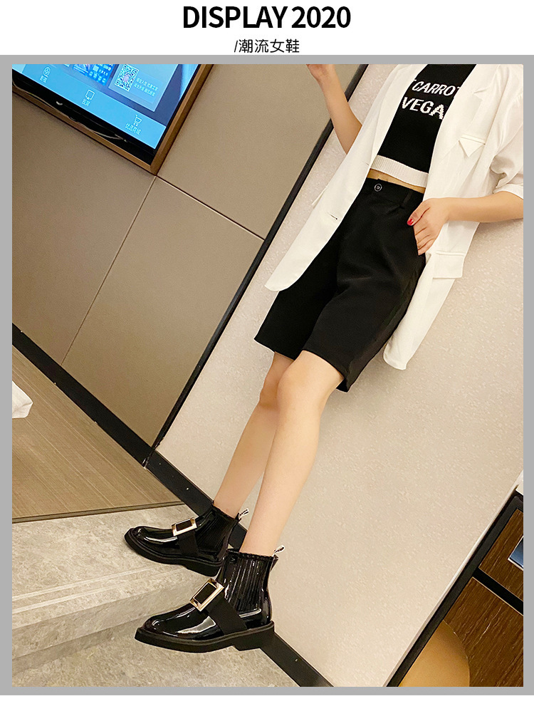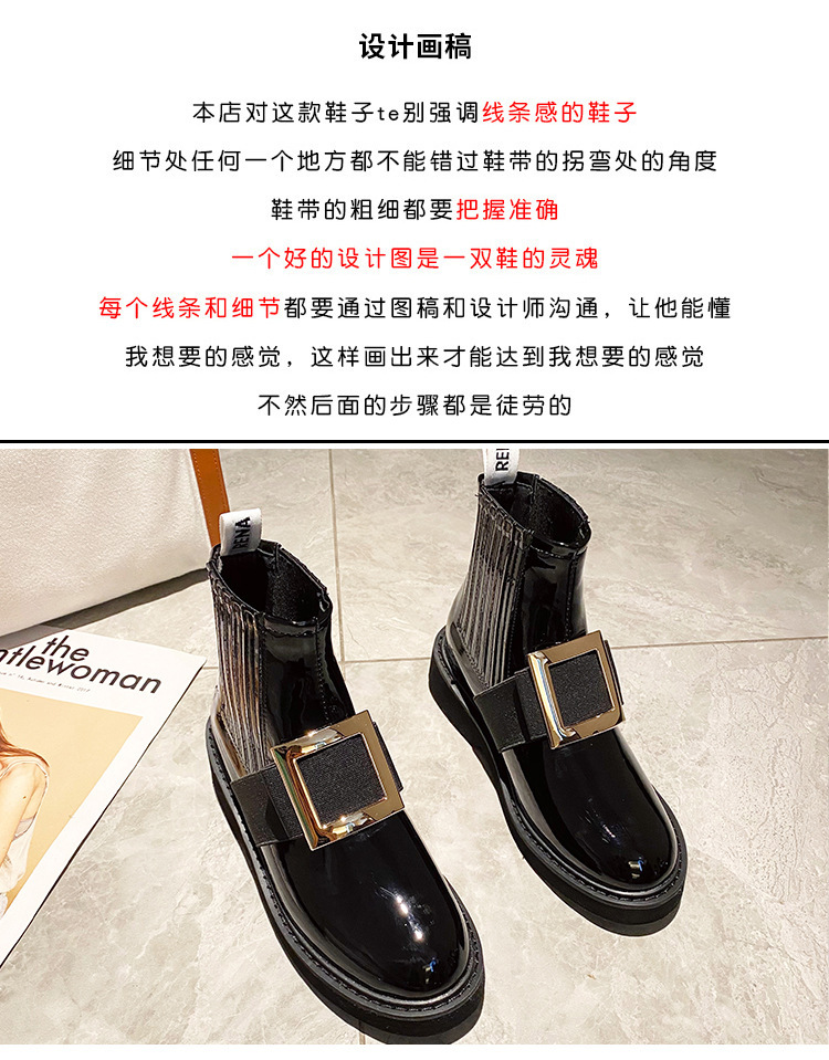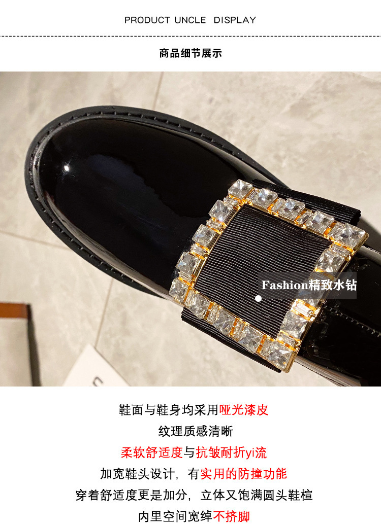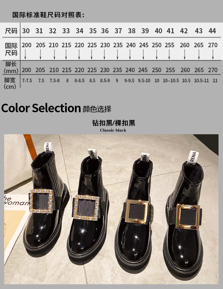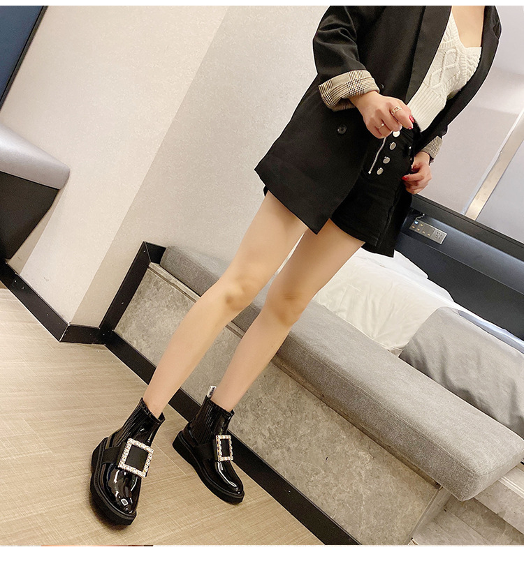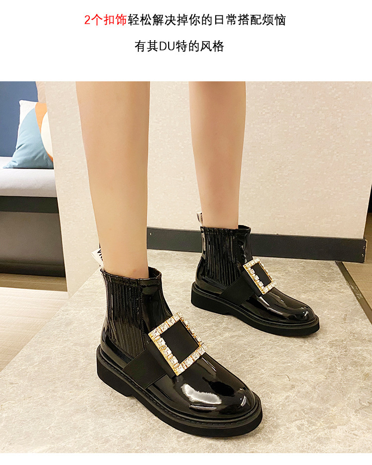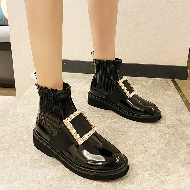짧은 부츠, 워터 다이아몬드 장식, 사각 버클, 에나멜 가죽, 영국 스타일 마틴 부츠, 여성용 2024 가을 겨울 스타일, 연예인 같은 스타일의 첼시 부츠스토어 가기