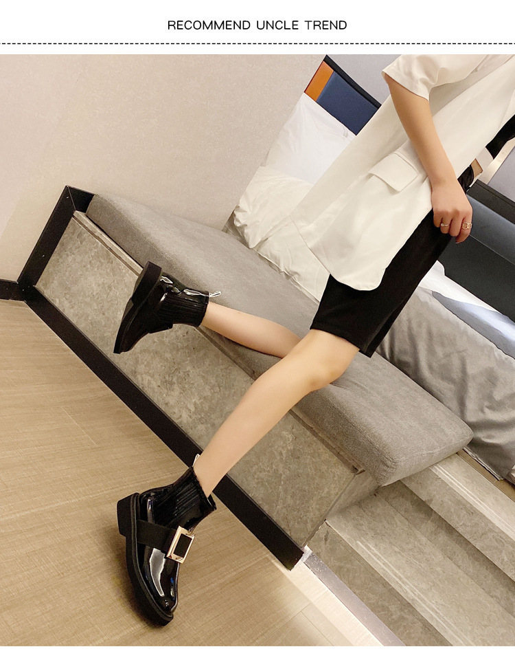 짧은 부츠, 워터 다이아몬드 장식, 사각 버클, 에나멜 가죽, 영국 스타일 마틴 부츠, 여성용 2024 가을 겨울 스타일, 연예인 같은 스타일의 첼시 부츠