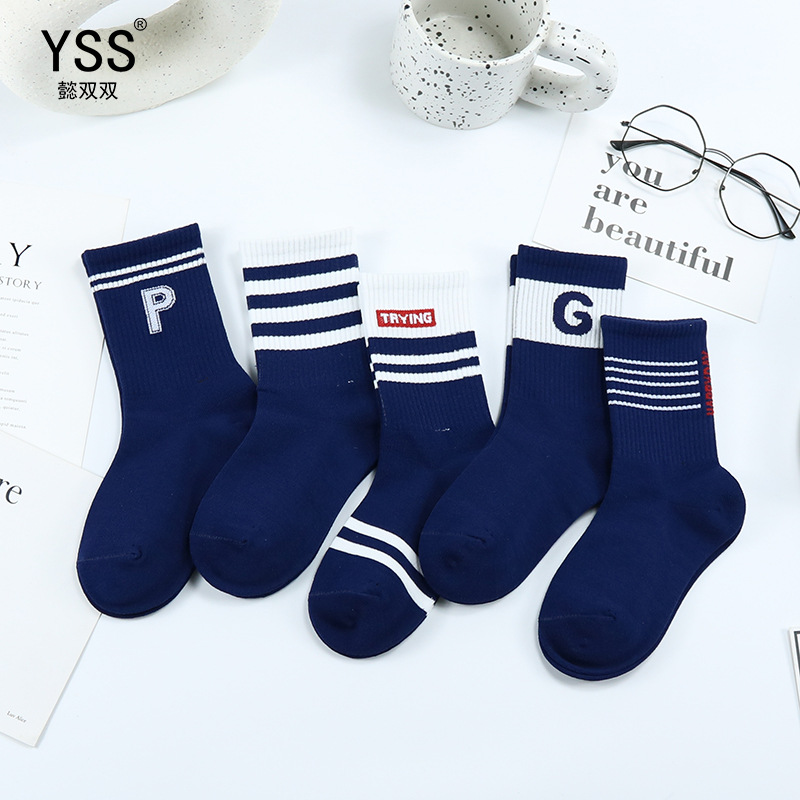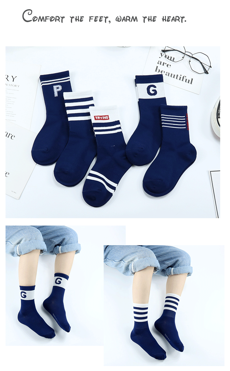 이순신 쌍 어린이 양말 가을과 겨울 새로운 유행 브랜드 알파벳 높은 스타킹 빗질 코튼 소년 뼈없는 하이 웨이스트 학생 양말스토어 가기