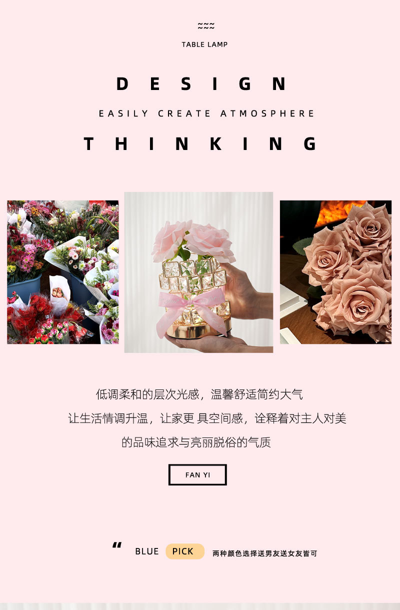장미 램프 테이블 램프 침실 침대 옆 방 튤립 야간 조명 고급 감각 장식 분위기 램프 생일 선물