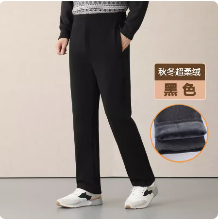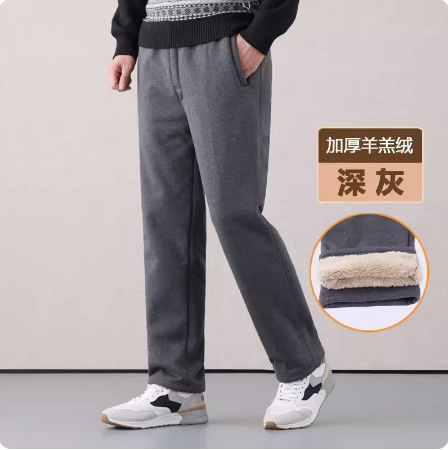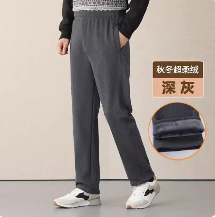 가을과 겨울 중년 및 노인 기모 스포츠 바지 남자의 느슨한 아빠의 탄성 허리 두꺼운 양고기 양털 캐주얼 바지 겉옷을 위한 면 바지