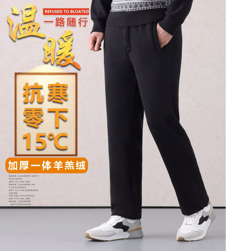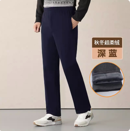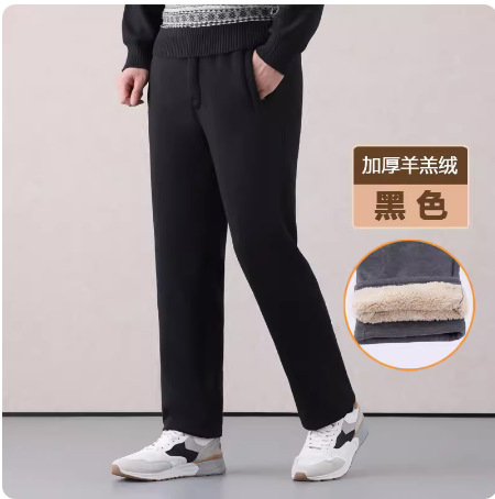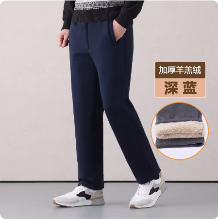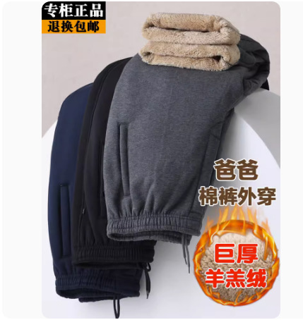 가을과 겨울 중년 및 노인 기모 스포츠 바지 남자의 느슨한 아빠의 탄성 허리 두꺼운 양고기 양털 캐주얼 바지 겉옷을 위한 면 바지스토어 가기