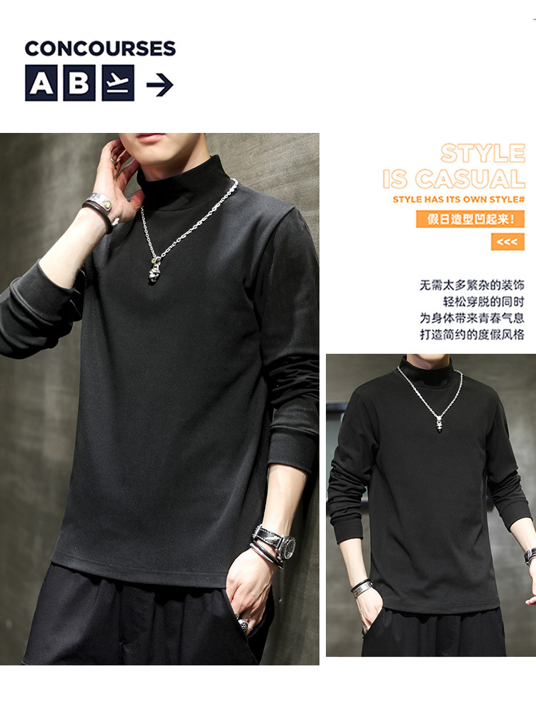 2023 가을과 겨울 독일 벨벳 스웨터 남자 긴소매 한국 트렌드 단색 스웨터 기본 셔츠 새로운 남성 캐주얼스토어 가기