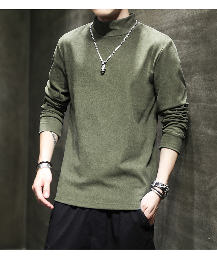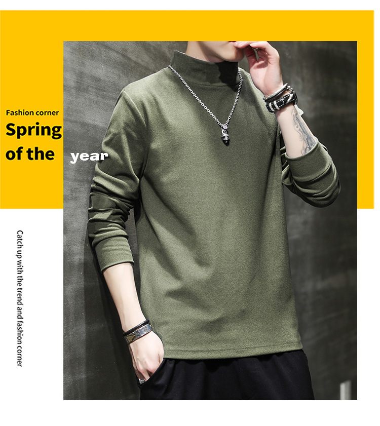 2023 가을과 겨울 독일 벨벳 스웨터 남자 긴소매 한국 트렌드 단색 스웨터 기본 셔츠 새로운 남성 캐주얼