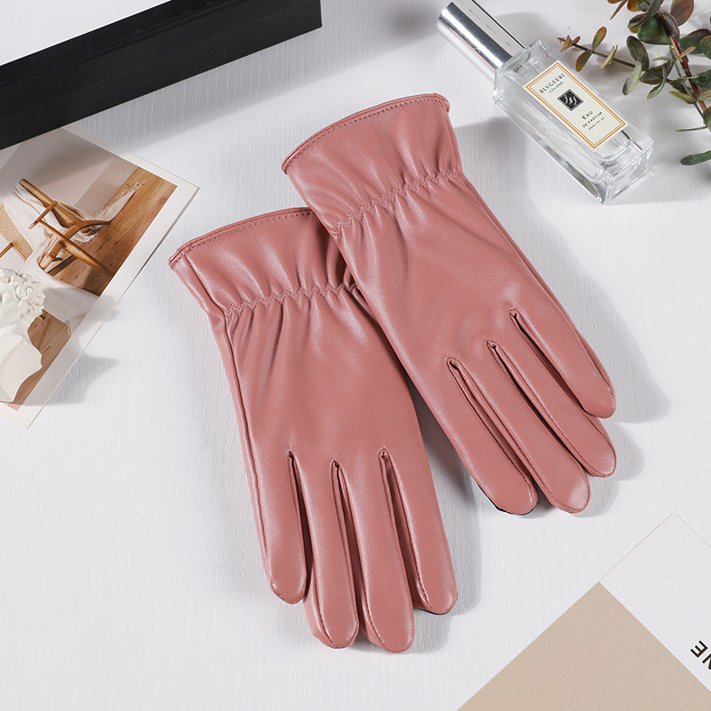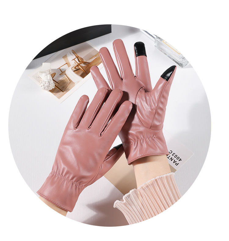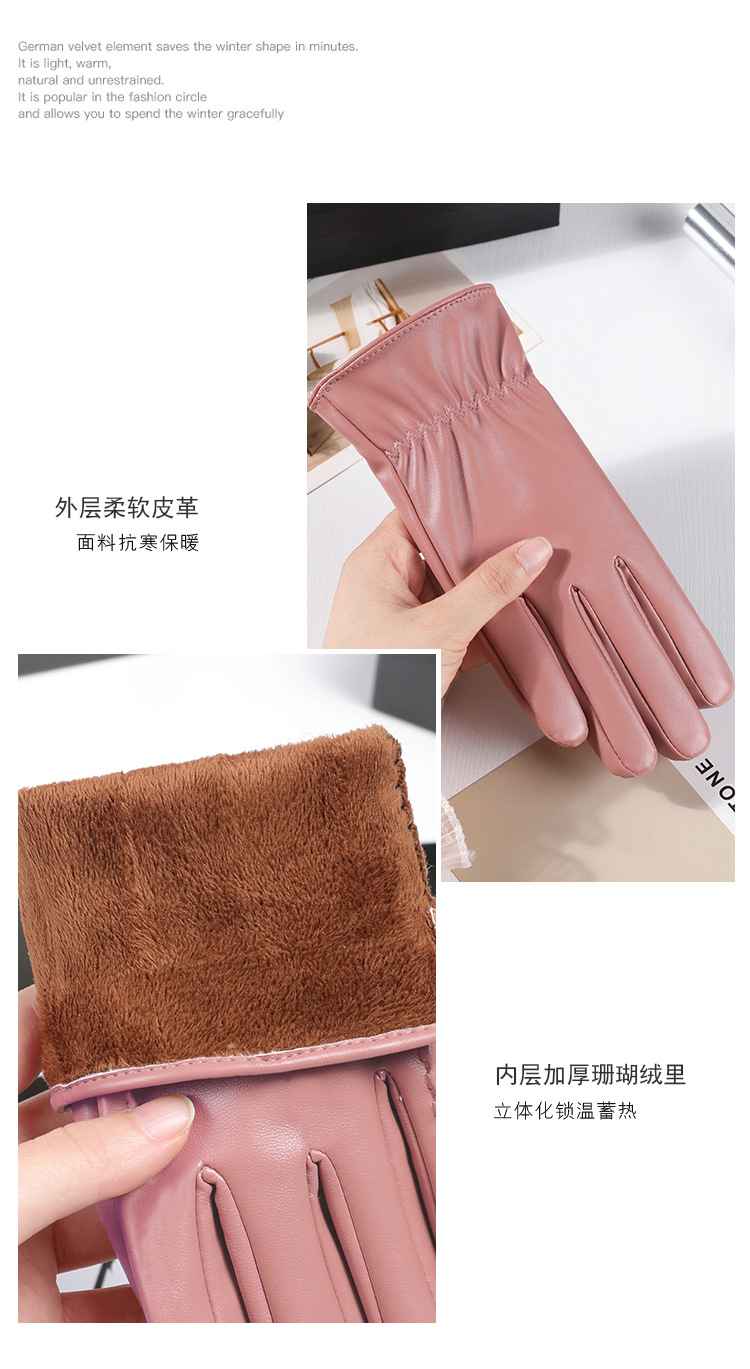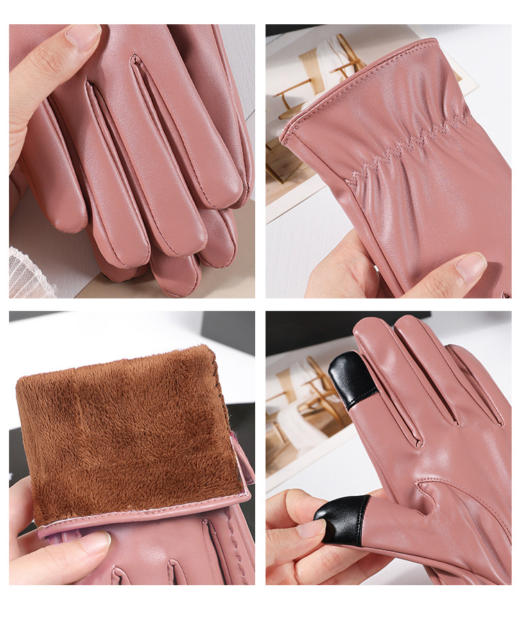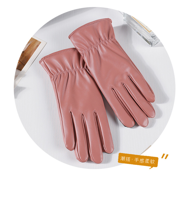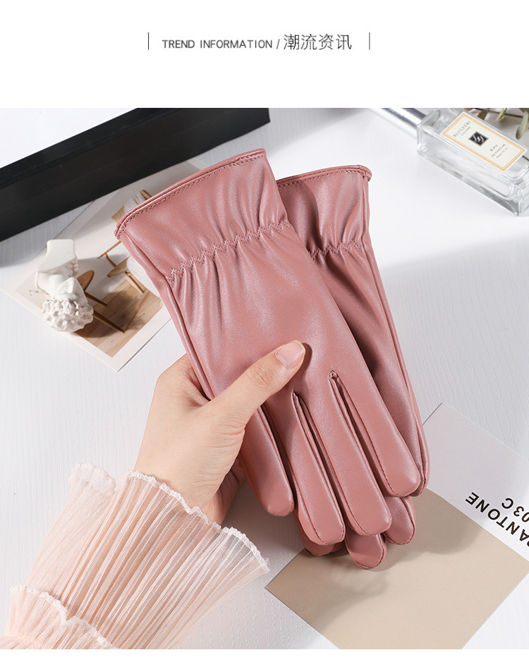 가죽 장갑 여성용 가을 겨울용 플러스 벨벳 보온 야외 라이딩 운전 방풍 터치스크린 방한 한국 스타일 다색 PU 장갑