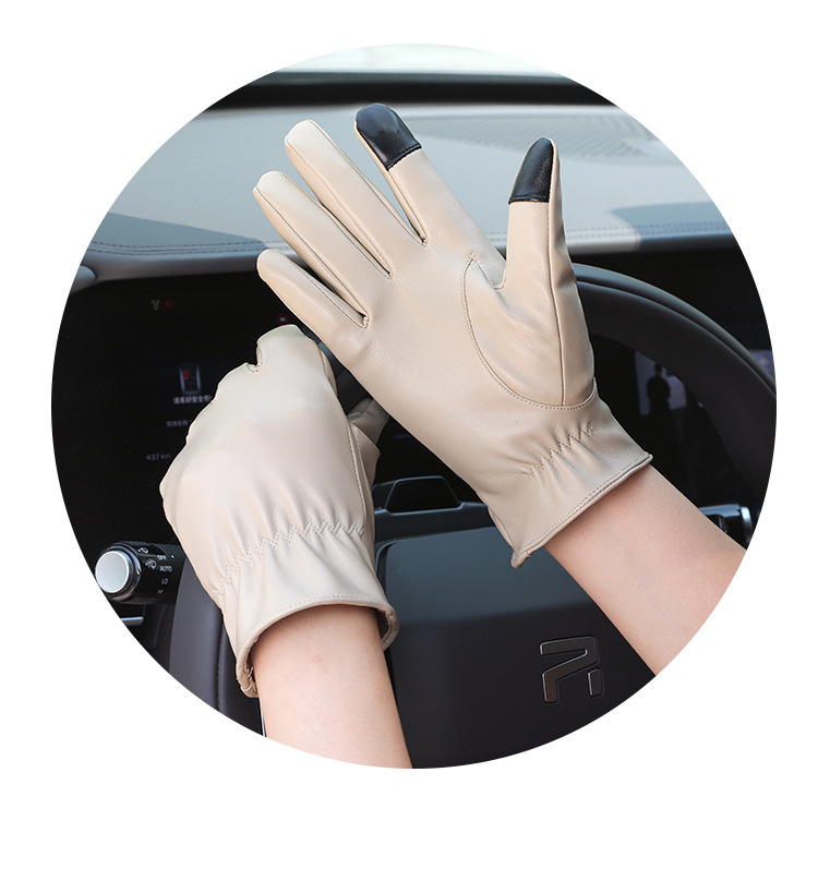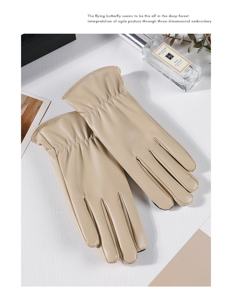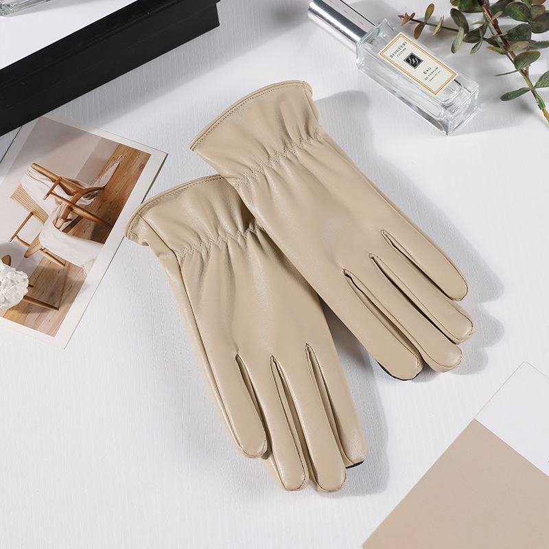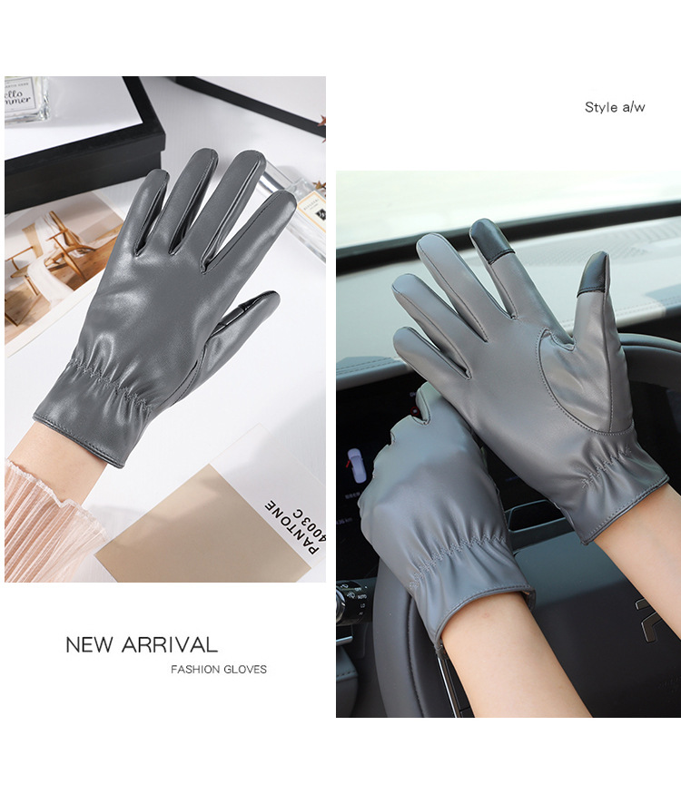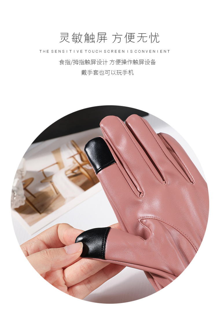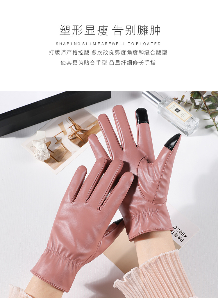 가죽 장갑 여성용 가을 겨울용 플러스 벨벳 보온 야외 라이딩 운전 방풍 터치스크린 방한 한국 스타일 다색 PU 장갑