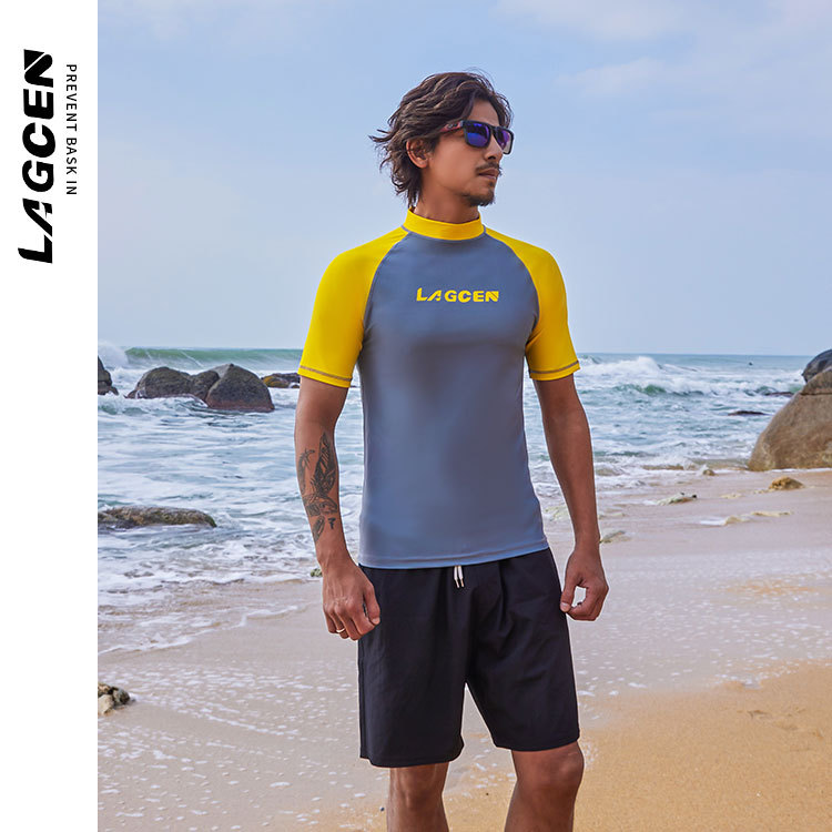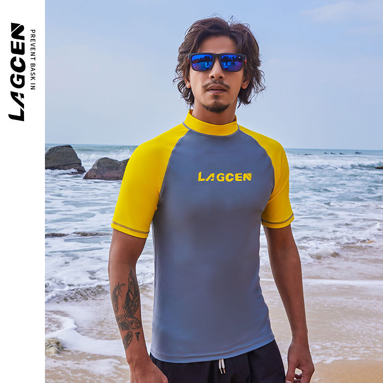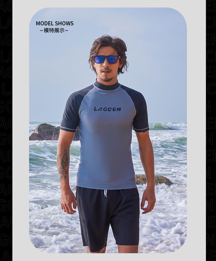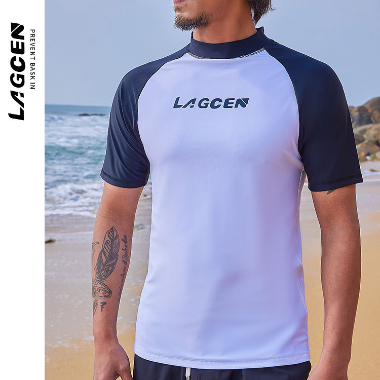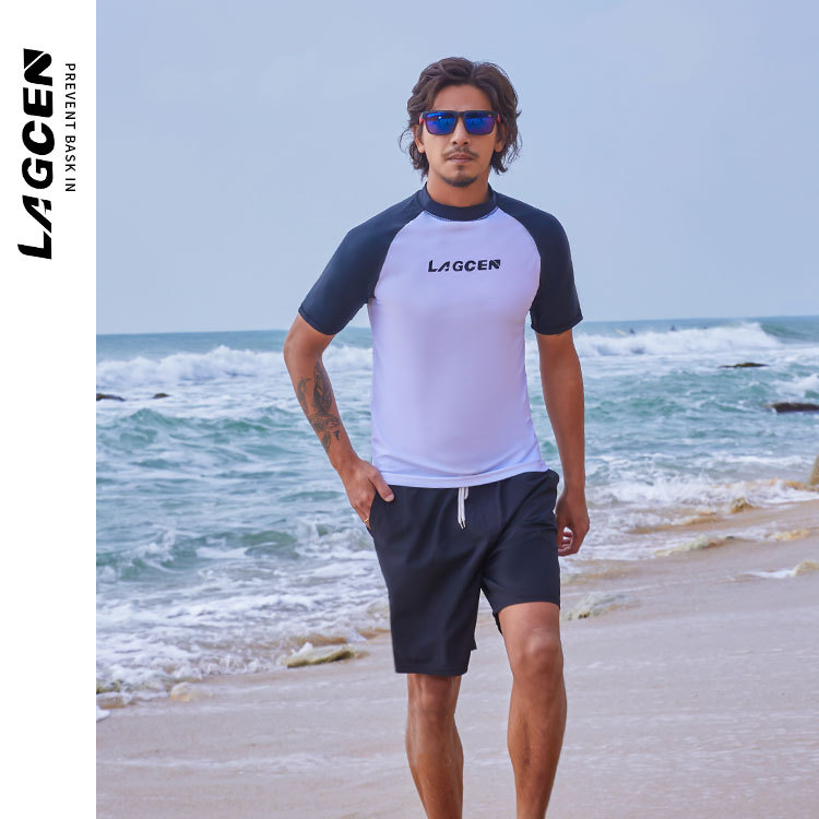 LAGCEN Lanchen 통기성 속건 남성용 티셔츠 캐주얼 웨이딩 스포츠 수영복 반팔 자외선 차단제 슬림 다이빙 세트
