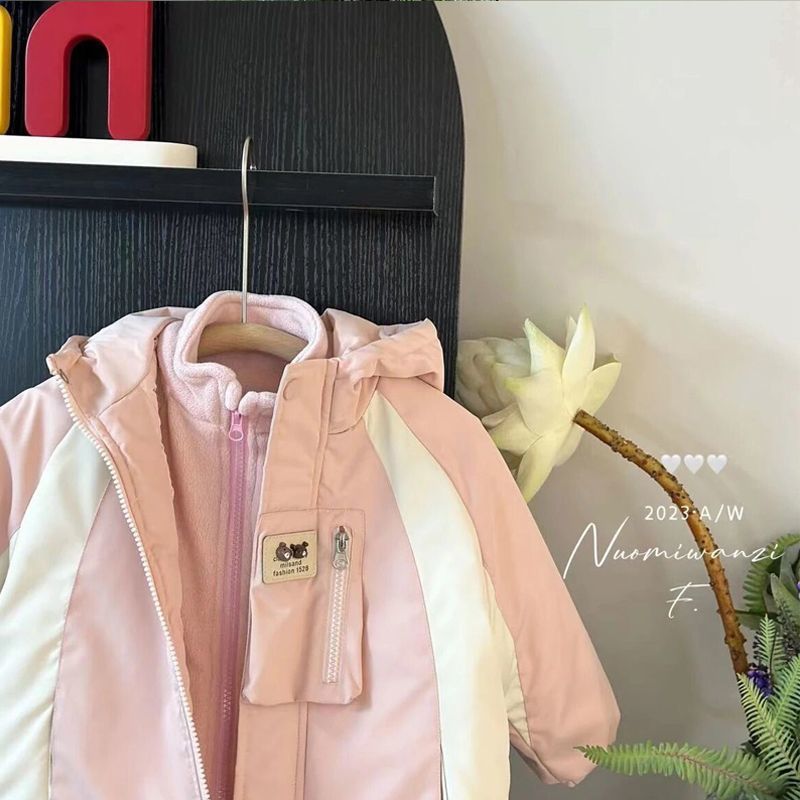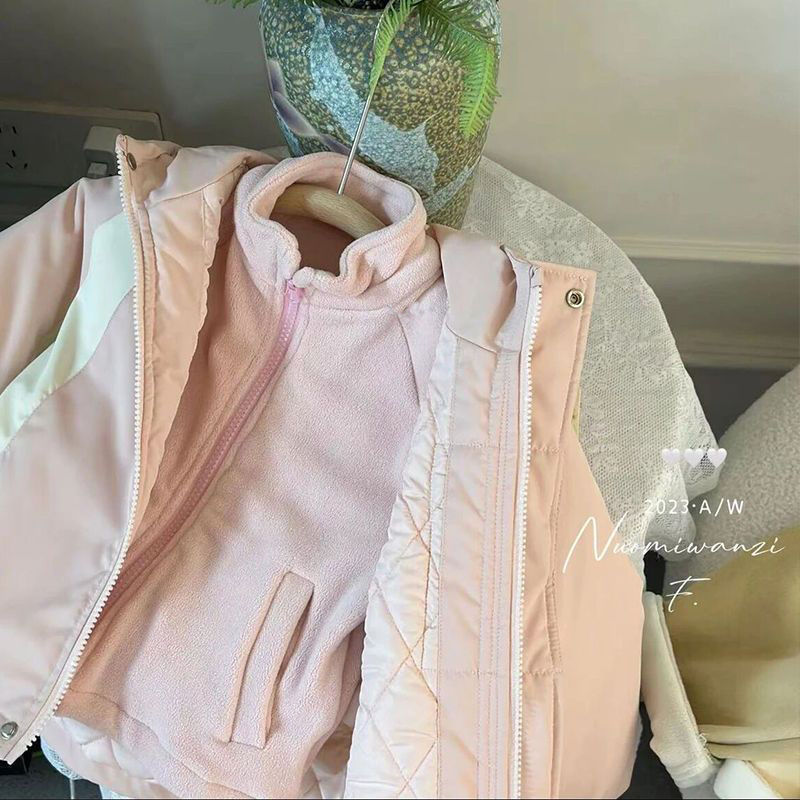 여아 가을과 겨울 옷 두꺼운 코트 2023 새로운 어린이 세련된 면 재킷 여아 쓰리 인 원 분리형스토어 가기