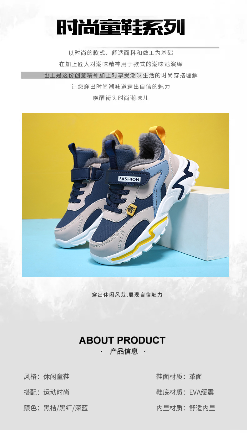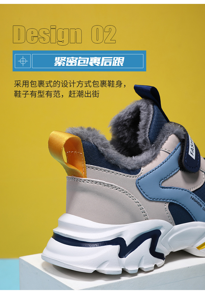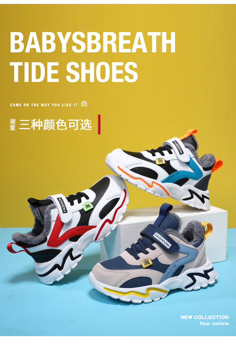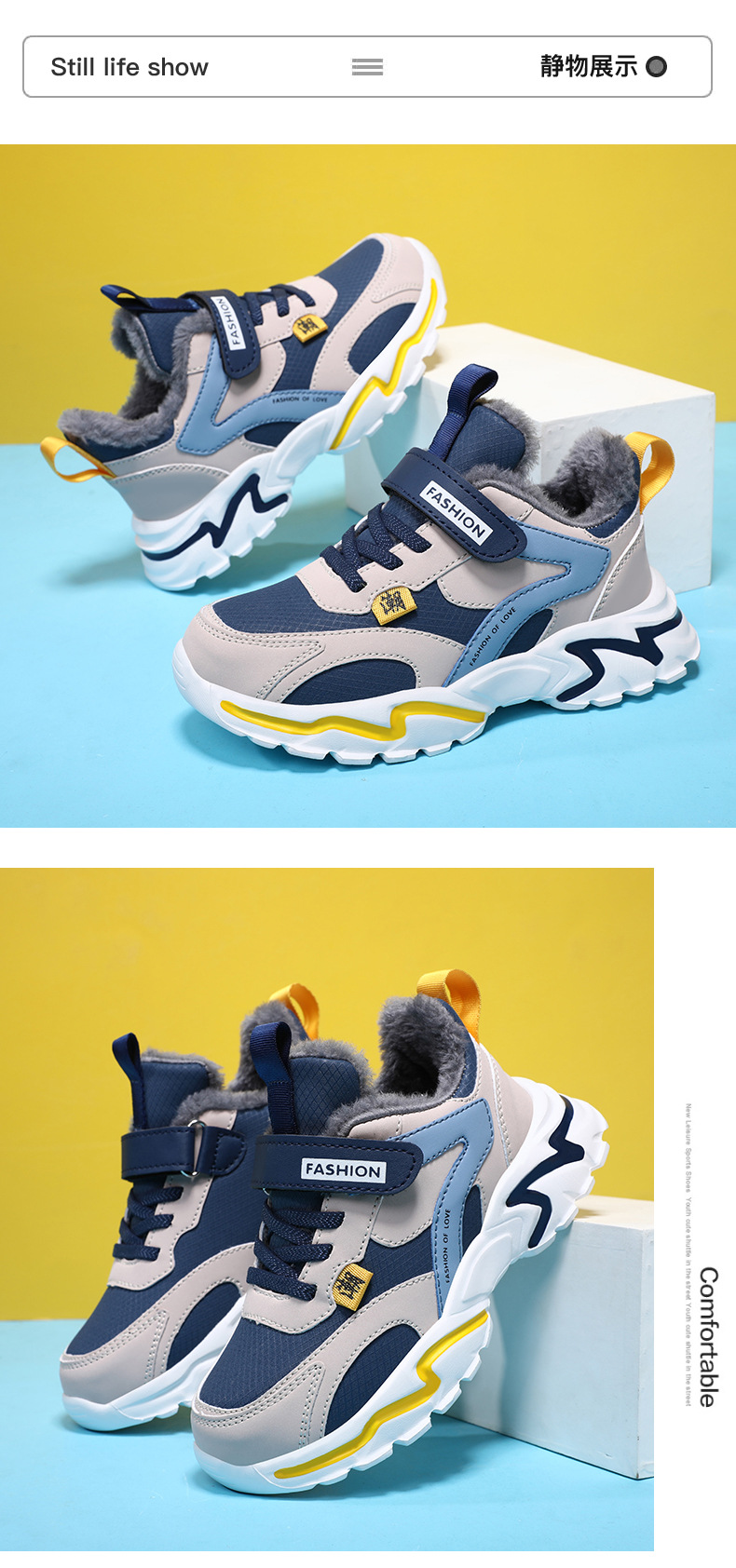 어린이용 면화 신발 2024 겨울용 플러스 벨벳 안감 보온 학생용 남아 캐주얼 운동화 매직 테이프 경량 미끄럼 방지스토어 가기