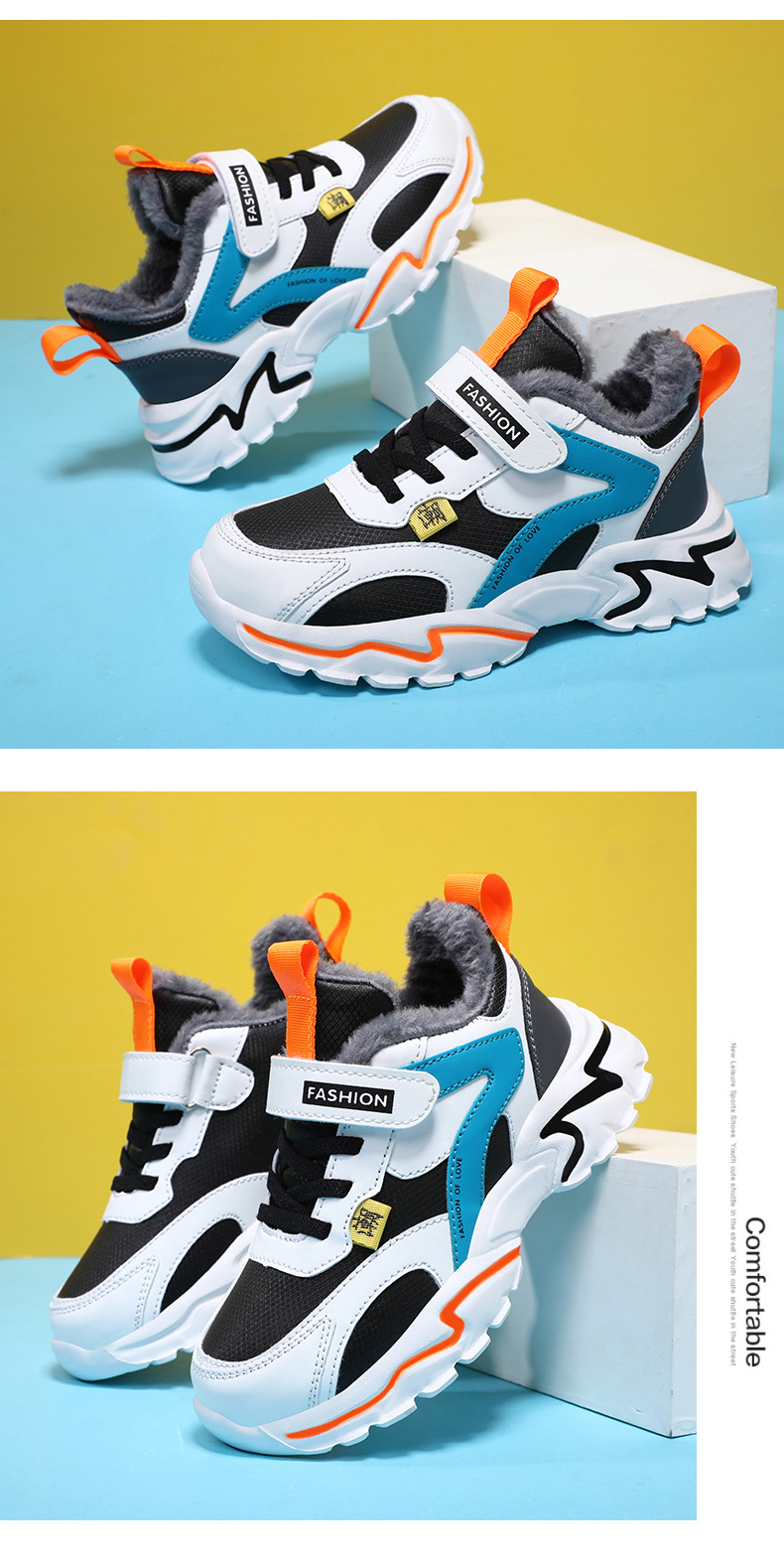 어린이용 면화 신발 2024 겨울용 플러스 벨벳 안감 보온 학생용 남아 캐주얼 운동화 매직 테이프 경량 미끄럼 방지