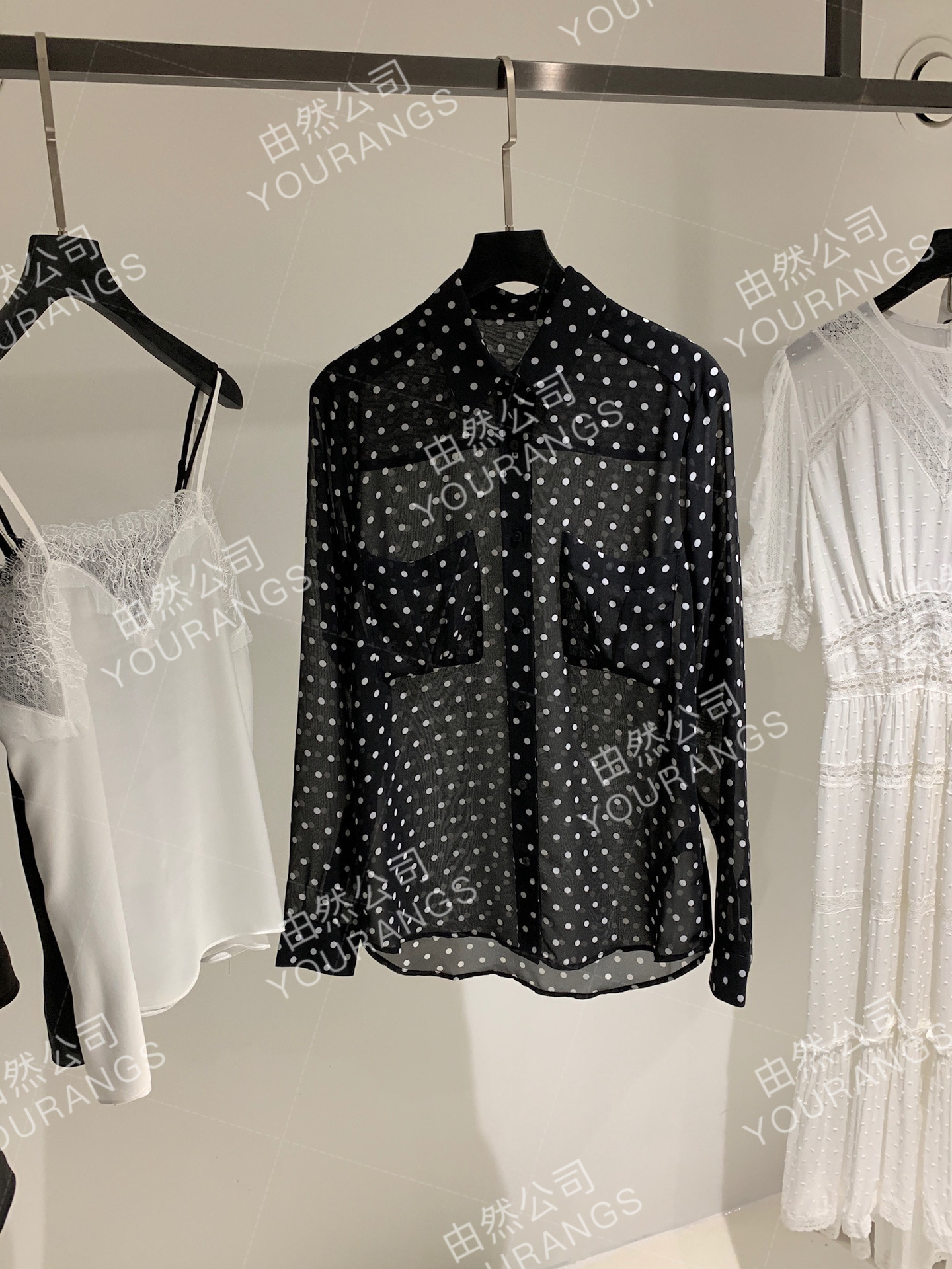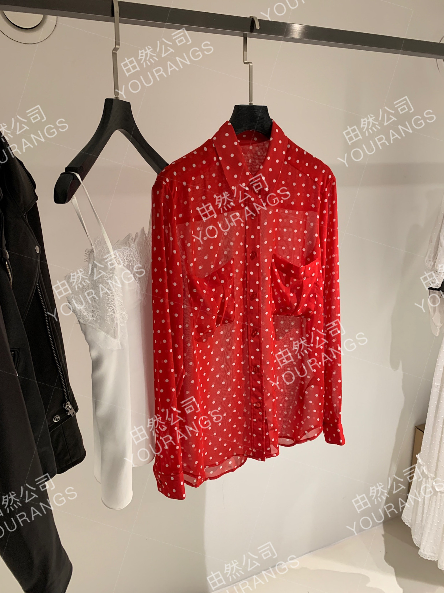 [Kui Qing 95] 클래식 프렌치 홍콩 스타일 분위기 높은 트위스트 쉬폰 웨이브 도트 프린트 셔츠스토어 가기